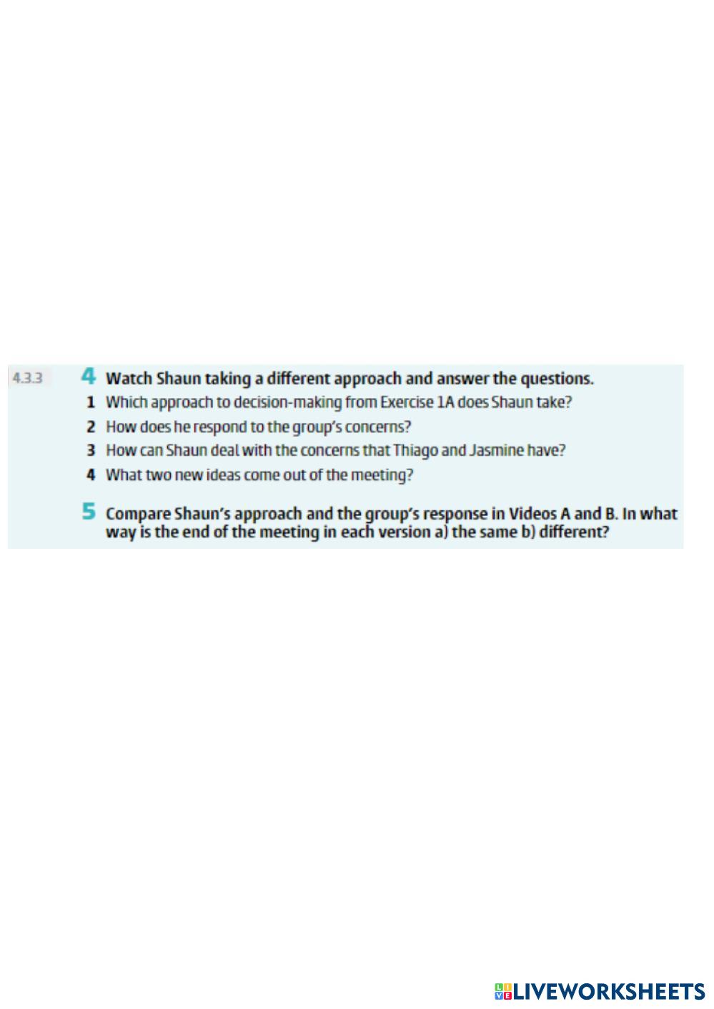 Created by annetavalinova English language Making group decision Edad 18+ level: a2+ English Instrucciones del autor My Google Classroom Courses × 0 classes selected (0 students total) Quick Access Select all classes (0 classes) All Classes Loading courses... Cancelar Share Share to selected Course __COURSE_NAME__ __STUDENT_NAME__ (__STUDENT_EMAIL__) Making group decision Descargar Worksheet Validation Comprobar mis respuestas Emails my answers to my teacher Nombre completo Group/level Asignatura Teacher's email or key code Close Submit Validating worksheet... (12) Your answers have been sent to your teacher. Good luck! OK We encountered an error submitting your answers. Please try again. OK Anuncio | Ir sin anuncios Created by annetavalinova English language Making group decision Edad 18+ level: a2+ English Instrucciones del autor