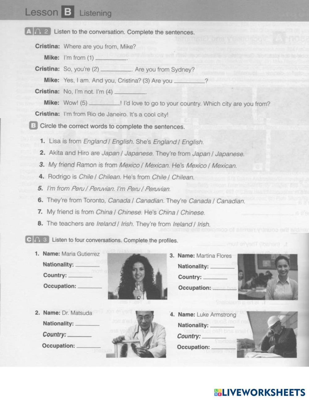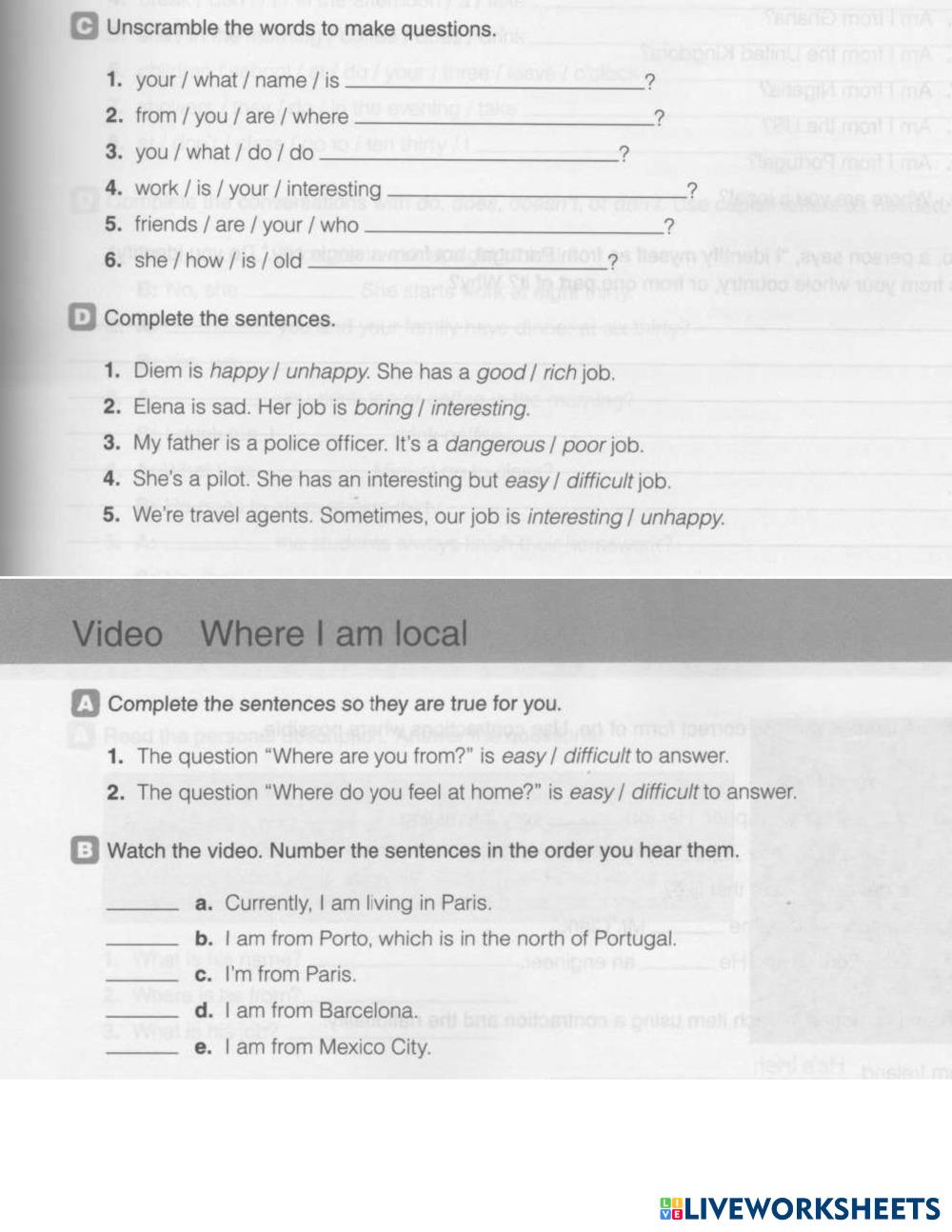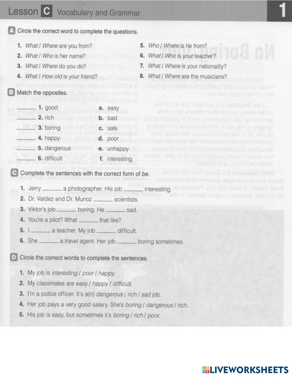 Created byMahrly Medina English language People Edad 15+ level: Lvl 3 English Instrucciones del autor My Google Classroom Courses × 0 classes selected (0 students total) Quick Access Select all classes (0 classes) All Classes Loading courses... Cancelar Share Share to selected Course __COURSE_NAME__ __STUDENT_NAME__ (__STUDENT_EMAIL__) WE1_WB_UNIT1 Descargar Worksheet Validation Comprobar mis respuestas Emails my answers to my teacher Nombre completo Group/level Asignatura Teacher's email or key code Close Submit Validating worksheet... (12) Your answers have been sent to your teacher. Good luck! OK We encountered an error submitting your answers. Please try again. OK Anuncio | Ir sin anuncios Created byMahrly Medina English language People Edad 15+ level: Lvl 3 English Instrucciones del autor