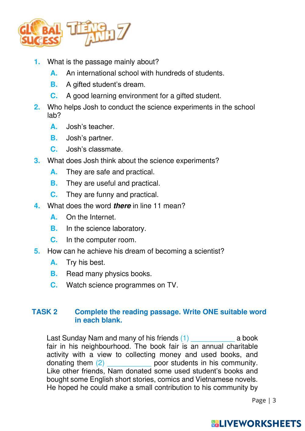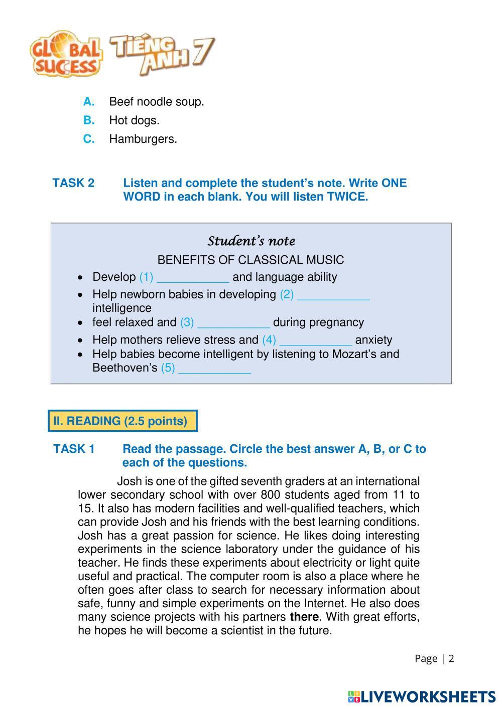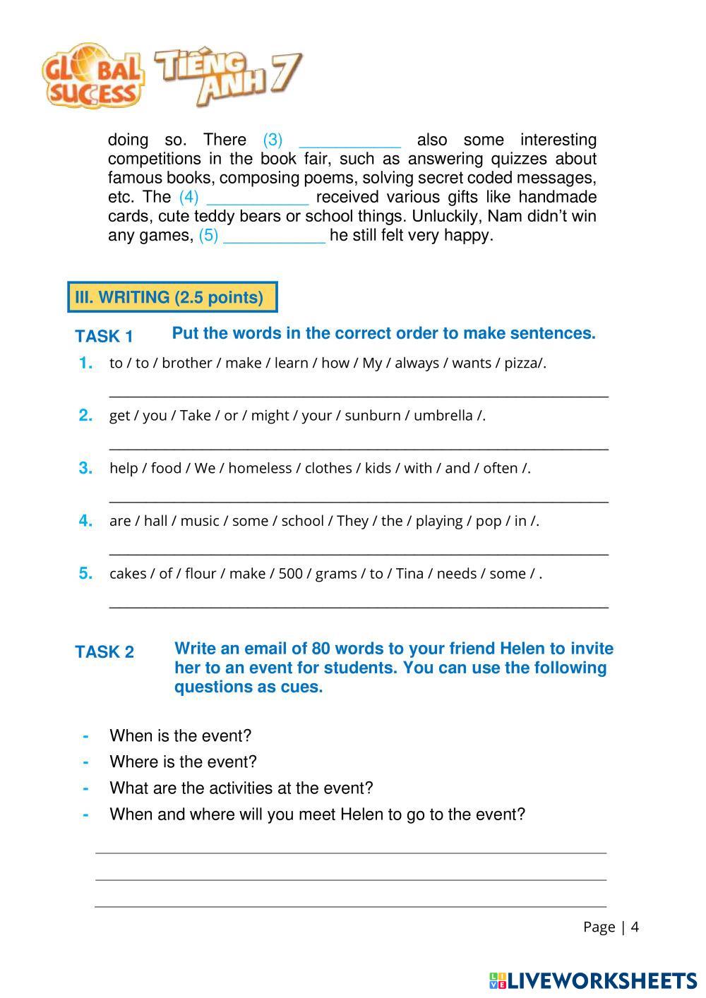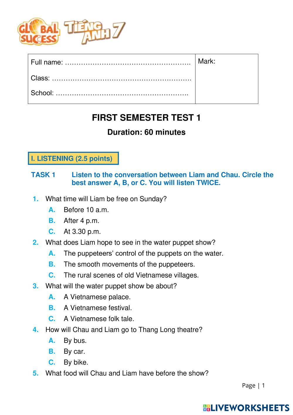 Created byTA Day Kem - Flyers English language English Edad 12-18 level: 6-8 English Instrucciones del autor My Google Classroom Courses × 0 classes selected (0 students total) Quick Access Select all classes (0 classes) All Classes Loading courses... Cancelar Share Share to selected Course __COURSE_NAME__ __STUDENT_NAME__ (__STUDENT_EMAIL__) END-OF-TERM TEST 1 (Semester 1) Descargar Worksheet Validation Comprobar mis respuestas Emails my answers to my teacher Nombre completo Group/level Asignatura Teacher's email or key code Close Submit Validating worksheet... (12) Your answers have been sent to your teacher. Good luck! OK We encountered an error submitting your answers. Please try again. OK Anuncio | Ir sin anuncios Created byTA Day Kem - Flyers English language English Edad 12-18 level: 6-8 English Instrucciones del autor