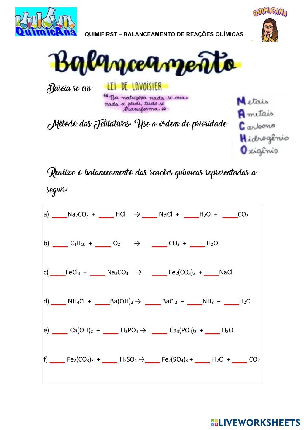 Quimifirst sobre Balanceamento de Reações Químicas sobre Método das Tentativas e Regra do MACHO.