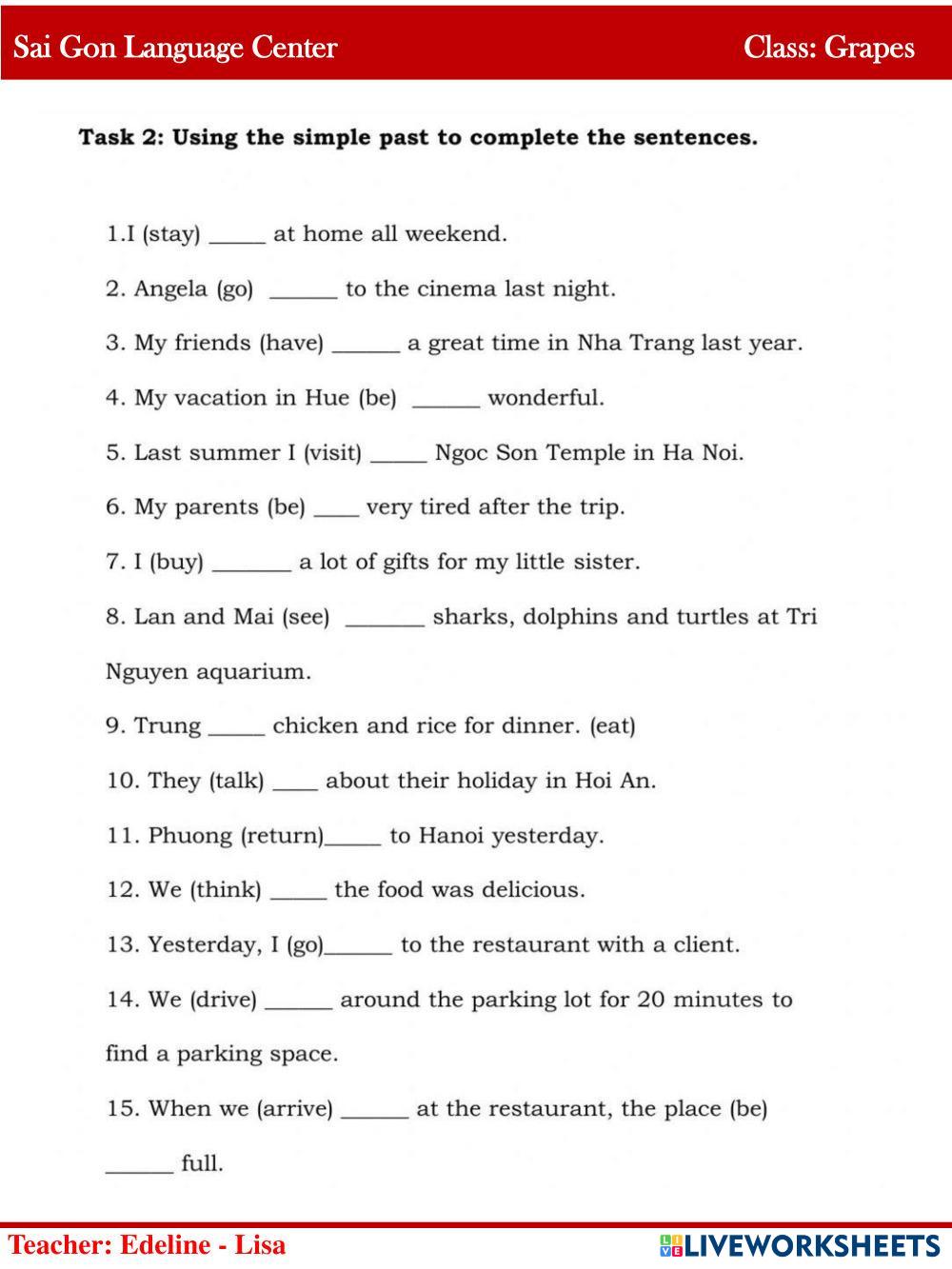 Created byngocgiang English as a Second Language (ESL) Review Edad 8-11 level: 1 English Instrucciones del autor My Google Classroom Courses × 0 classes selected (0 students total) Quick Access Select all classes (0 classes) All Classes Loading courses... Cancelar Share Share to selected Course __COURSE_NAME__ __STUDENT_NAME__ (__STUDENT_EMAIL__) Grapes2/10/2023 Descargar Worksheet Validation Comprobar mis respuestas Emails my answers to my teacher Nombre completo Group/level Asignatura Teacher's email or key code Close Submit Validating worksheet... (12) Your answers have been sent to your teacher. Good luck! OK We encountered an error submitting your answers. Please try again. OK Anuncio | Ir sin anuncios Created byngocgiang English as a Second Language (ESL) Review Edad 8-11 level: 1 English Instrucciones del autor