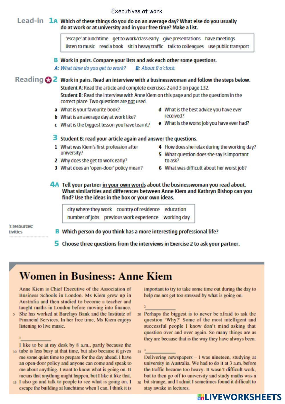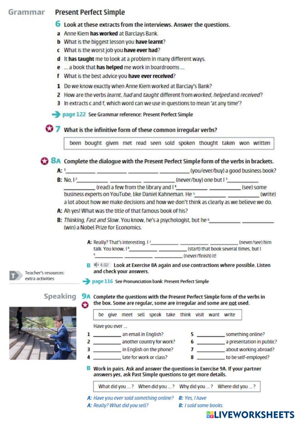 Created by annetavalinova English as a Second Language (ESL) Executives at work - Present Perfect Edad 18+ level: b1 English Instrucciones del autor My Google Classroom Courses × 0 classes selected (0 students total) Quick Access Select all classes (0 classes) All Classes Loading courses... Cancelar Share Share to selected Course __COURSE_NAME__ __STUDENT_NAME__ (__STUDENT_EMAIL__) Executives at work - Present Perfect Descargar Worksheet Validation Comprobar mis respuestas Emails my answers to my teacher Nombre completo Group/level Asignatura Teacher's email or key code Close Submit Validating worksheet... (12) Your answers have been sent to your teacher. Good luck! OK We encountered an error submitting your answers. Please try again. OK Anuncio | Ir sin anuncios Created by annetavalinova English as a Second Language (ESL) Executives at work - Present Perfect Edad 18+ level: b1 English Instrucciones del autor