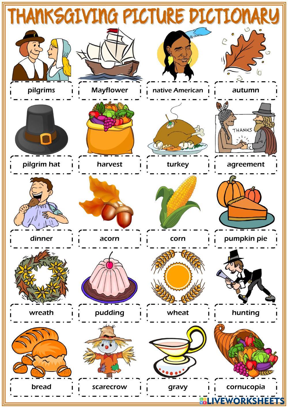 You can practice the vocabulary of Thanksgiving Day