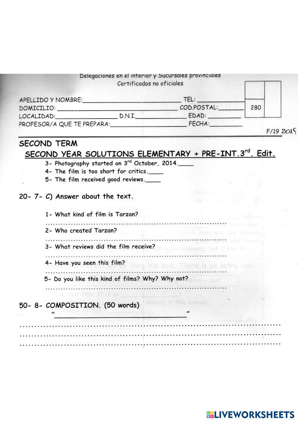 Second Year. Composition 2nd Term Test
