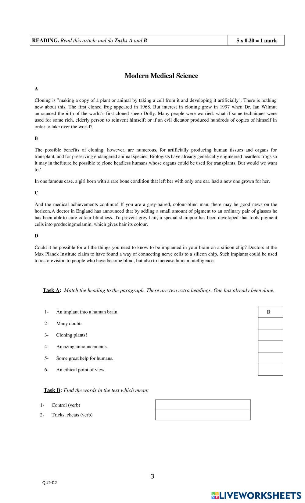 • Tests and exams