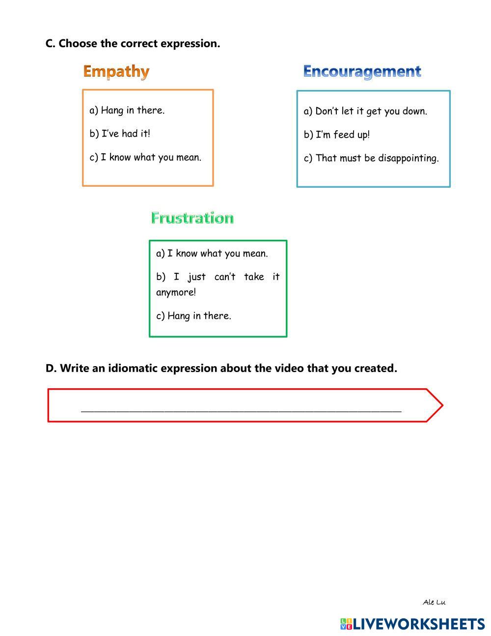 Created by AleLu English as a Second Language (ESL) Idioms and expressions Edad 15+ level: 6.1 English Author's Instructions My Google Classroom Courses × 0 classes selected (0 students total) Quick Access Select all classes (0 classes) All Classes Loading courses... Cancelar Share Share to selected Course __COURSE_NAME__ __STUDENT_NAME__ (__STUDENT_EMAIL__) SUM 2 Vocabulary U2-3 Download Worksheet Validation Comprobar mis respuestas Emails my answers to my teacher Nombre completo Group/level Asignatura Teacher's email or key code Close Submit Validating worksheet... (12) Your answers have been sent to your teacher. Good luck! OK We encountered an error submitting your answers. Please try again. OK Anuncio | Ir sin anuncios Created by AleLu English as a Second Language (ESL) Idioms and expressions Edad 15+ level: 6.1 English Author's Instructions
