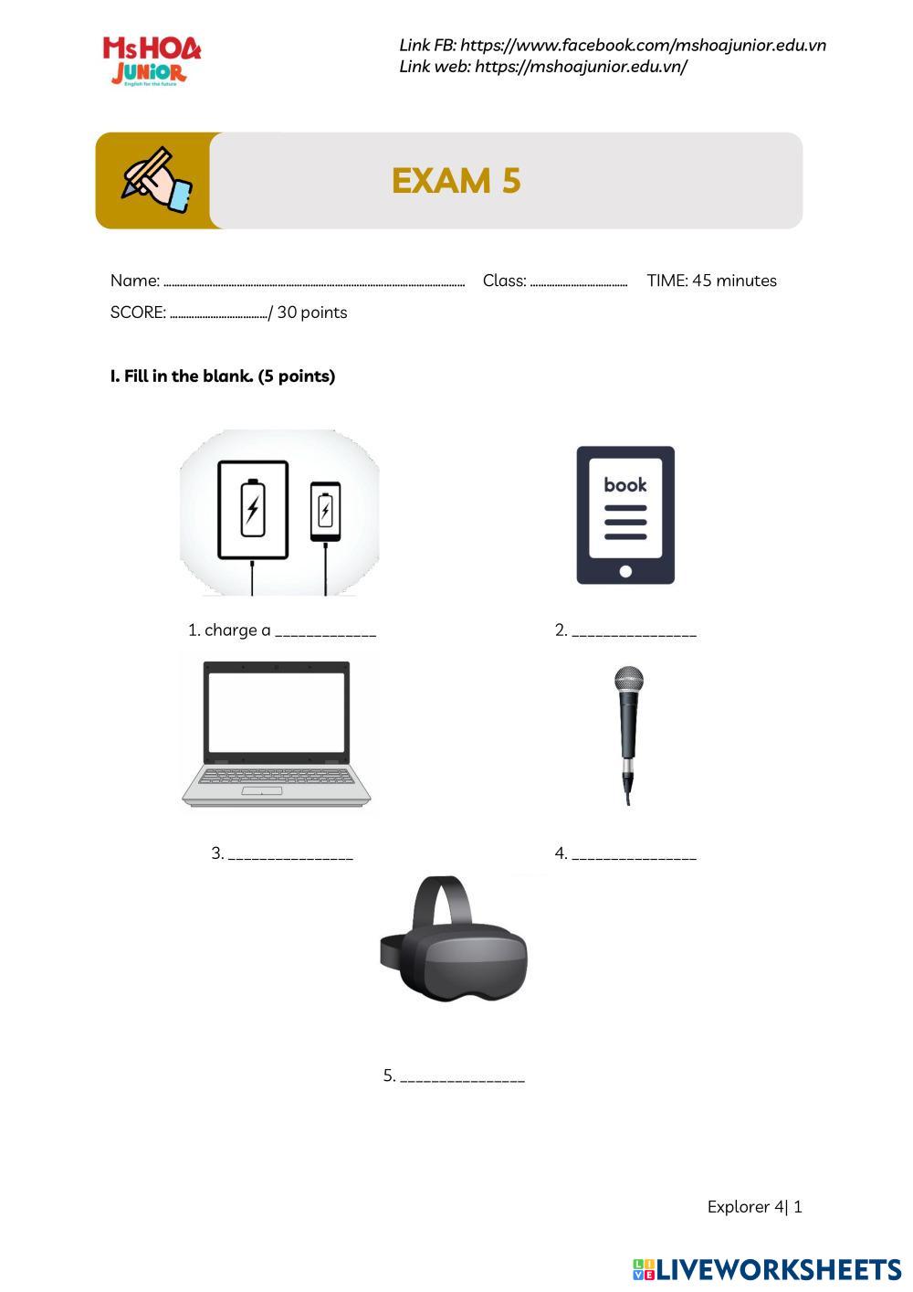 Created byHuynh Trong Son English as a Second Language (ESL) Exam Edad 9-15 level: Ex 4 English Instrucciones del autor My Google Classroom Courses × 0 classes selected (0 students total) Quick Access Select all classes (0 classes) All Classes Loading courses... Cancelar Share Share to selected Course __COURSE_NAME__ __STUDENT_NAME__ (__STUDENT_EMAIL__) Ex4 Exam 5 Descargar Worksheet Validation Comprobar mis respuestas Emails my answers to my teacher Nombre completo Group/level Asignatura Teacher's email or key code Close Submit Validating worksheet... (12) Your answers have been sent to your teacher. Good luck! OK We encountered an error submitting your answers. Please try again. OK Anuncio | Ir sin anuncios Created byHuynh Trong Son English as a Second Language (ESL) Exam Edad 9-15 level: Ex 4 English Instrucciones del autor