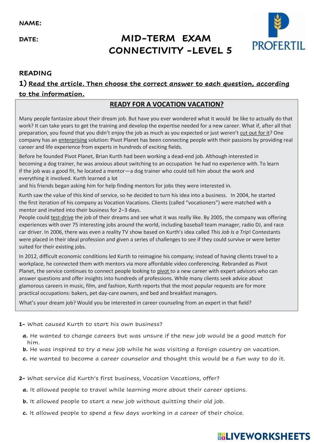 MID-TERM EXAM - CONNECTIVITY LEVEL 5 ( UNIT 1)