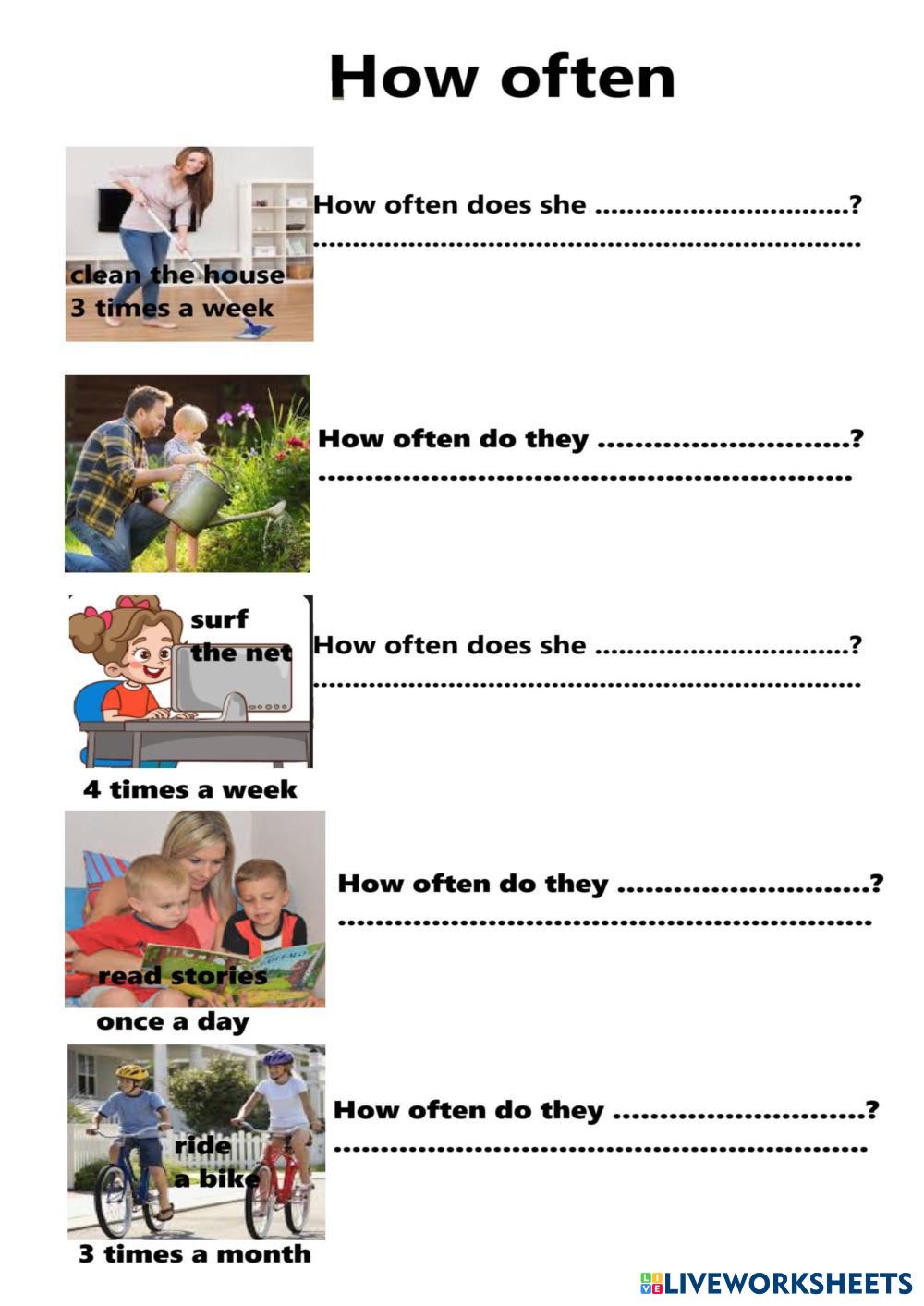 Created by Tinadao9082 English as a Second Language (ESL) How often Edad 9-14 level: 2 English Instrucciones del autor how often My Google Classroom Courses × 0 classes selected (0 students total) Quick Access Select all classes (0 classes) All Classes Loading courses... Cancelar Share Share to selected Course __COURSE_NAME__ __STUDENT_NAME__ (__STUDENT_EMAIL__) how often Descargar Worksheet Validation Comprobar mis respuestas Emails my answers to my teacher Nombre completo Group/level Asignatura Teacher's email or key code Close Submit Validating worksheet... (12) Your answers have been sent to your teacher. Good luck! OK We encountered an error submitting your answers. Please try again. OK Anuncio | Ir sin anuncios Created by Tinadao9082 English as a Second Language (ESL) How often Edad 9-14 level: 2 English Instrucciones del autor how often