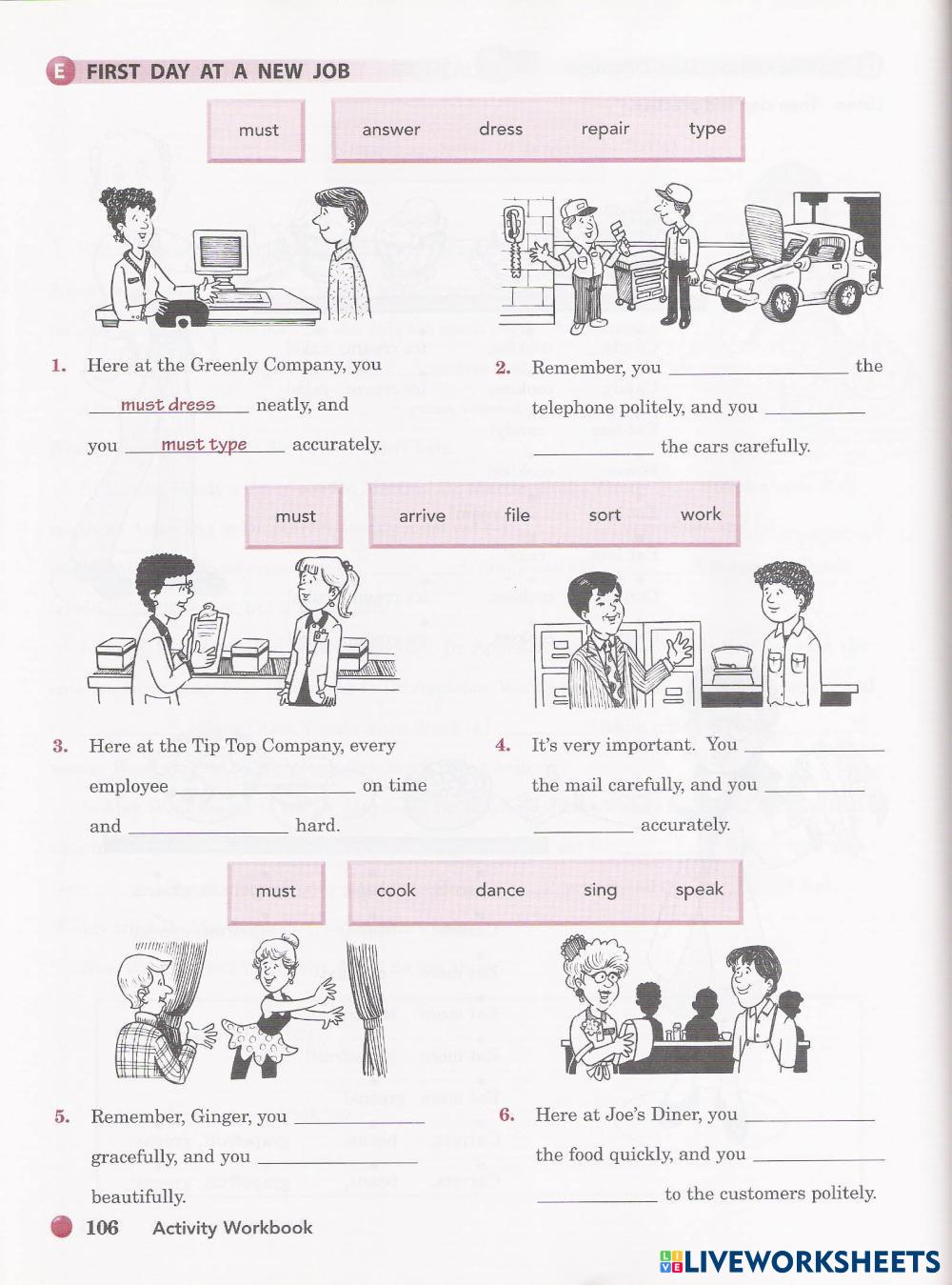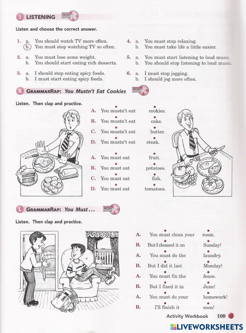 Created byHa English as a Second Language (ESL) Must have to Edad 8+ level: 2 English Author's Instructions My Google Classroom Courses × 0 classes selected (0 students total) Quick Access Select all classes (0 classes) All Classes Loading courses... Cancelar Share Share to selected Course __COURSE_NAME__ __STUDENT_NAME__ (__STUDENT_EMAIL__) SBS 2 - Chapter 11 - Past Tense Review; Count/ Non-Count Review; Must; Mustn't vs. Don't Have to; Must vs. Should - WB Download Worksheet Validation Comprobar mis respuestas Emails my answers to my teacher Nombre completo Group/level Asignatura Teacher's email or key code Close Submit Validating worksheet... (12) Your answers have been sent to your teacher. Good luck! OK We encountered an error submitting your answers. Please try again. OK Anuncio | Ir sin anuncios Created byHa English as a Second Language (ESL) Must have to Edad 8+ level: 2 English Author's Instructions