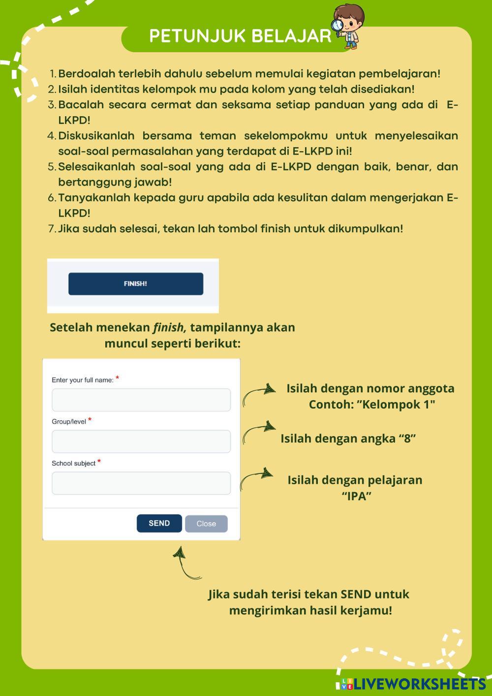 Created byNur_Avani Ilmu Pengetahuan Alam (IPA) Sistem pencernaan Edad 13+ level: 8 Indonesian Author's Instructions My Google Classroom Courses × 0 classes selected (0 students total) Quick Access Select all classes (0 classes) All Classes Loading courses... Cancelar Share Share to selected Course __COURSE_NAME__ __STUDENT_NAME__ (__STUDENT_EMAIL__) Sistem Pencernaan Download Worksheet Validation Comprobar mis respuestas Emails my answers to my teacher Nombre completo Group/level Asignatura Teacher's email or key code Close Submit Validating worksheet... (12) Your answers have been sent to your teacher. Good luck! OK We encountered an error submitting your answers. Please try again. OK Anuncio | Ir sin anuncios Created byNur_Avani Ilmu Pengetahuan Alam (IPA) Sistem pencernaan Edad 13+ level: 8 Indonesian Author's Instructions