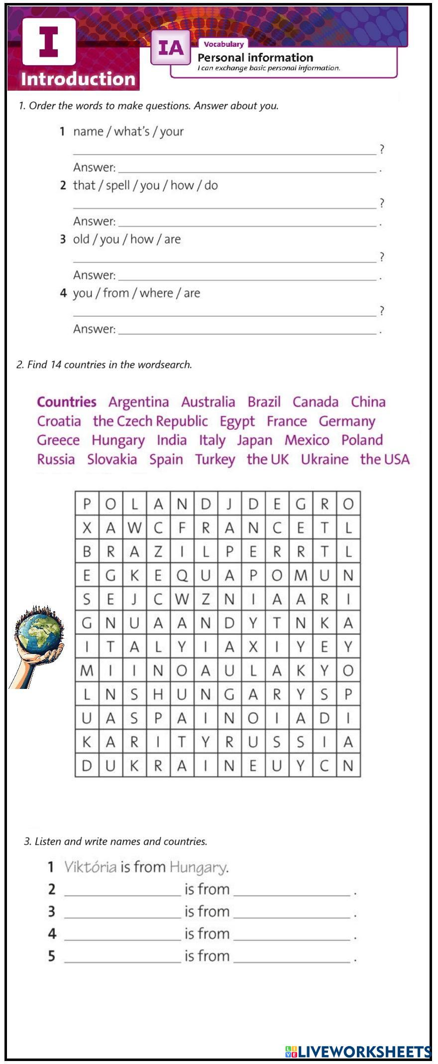 Created byRoyal English as a Second Language (ESL) Introductions Edad 6+ level: elementary English Instrucciones del autor My Google Classroom Courses × 0 classes selected (0 students total) Quick Access Select all classes (0 classes) All Classes Loading courses... Cancelar Share Share to selected Course __COURSE_NAME__ __STUDENT_NAME__ (__STUDENT_EMAIL__) Solutions Elementary 1a Descargar Worksheet Validation Comprobar mis respuestas Emails my answers to my teacher Nombre completo Group/level Asignatura Teacher's email or key code Close Submit Validating worksheet... (12) Your answers have been sent to your teacher. Good luck! OK We encountered an error submitting your answers. Please try again. OK Anuncio | Ir sin anuncios Created byRoyal English as a Second Language (ESL) Introductions Edad 6+ level: elementary English Instrucciones del autor