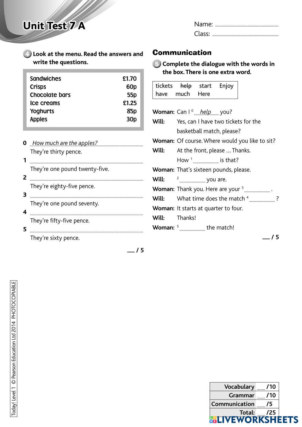 Created by miriamng2023 English as a Second Language (ESL) Unit 7 Edad 12+ level: A1 English Instrucciones del autor My Google Classroom Courses × 0 classes selected (0 students total) Quick Access Select all classes (0 classes) All Classes Loading courses... Cancelar Share Share to selected Course __COURSE_NAME__ __STUDENT_NAME__ (__STUDENT_EMAIL__) Kids 4 - Revision test Unit 7 Descargar Worksheet Validation Comprobar mis respuestas Emails my answers to my teacher Nombre completo Group/level Asignatura Teacher's email or key code Close Submit Validating worksheet... (12) Your answers have been sent to your teacher. Good luck! OK We encountered an error submitting your answers. Please try again. OK Anuncio | Ir sin anuncios Created by miriamng2023 English as a Second Language (ESL) Unit 7 Edad 12+ level: A1 English Instrucciones del autor
