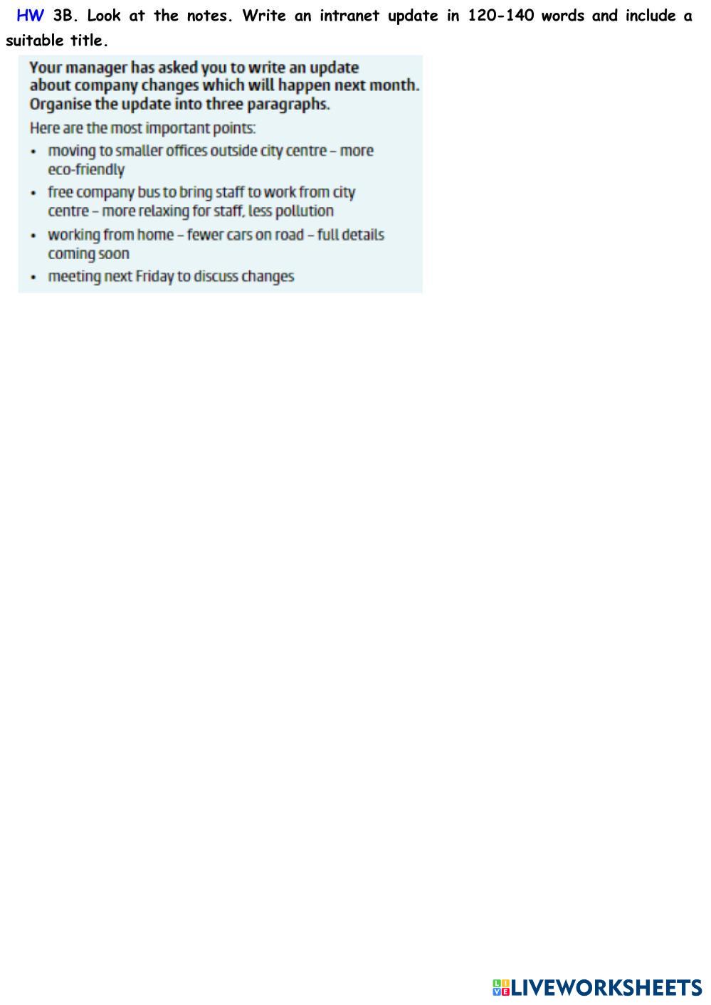 Created by annetavalinova English as a Second Language (ESL) An intranet update+Review Edad 18+ level: a2+ English Instrucciones del autor My Google Classroom Courses × 0 classes selected (0 students total) Quick Access Select all classes (0 classes) All Classes Loading courses... Cancelar Share Share to selected Course __COURSE_NAME__ __STUDENT_NAME__ (__STUDENT_EMAIL__) An intranet update+Review Descargar Worksheet Validation Comprobar mis respuestas Emails my answers to my teacher Nombre completo Group/level Asignatura Teacher's email or key code Close Submit Validating worksheet... (12) Your answers have been sent to your teacher. Good luck! OK We encountered an error submitting your answers. Please try again. OK Anuncio | Ir sin anuncios Created by annetavalinova English as a Second Language (ESL) An intranet update+Review Edad 18+ level: a2+ English Instrucciones del autor
