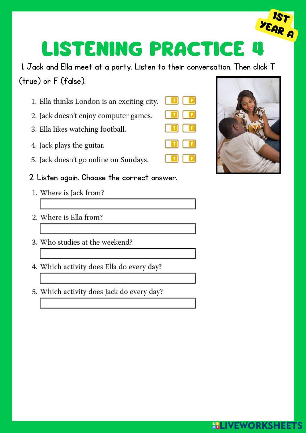 Created byAna María González English as a Second Language (ESL) Listening comprehension Edad 11+ level: 1st year English Instrucciones del autor My Google Classroom Courses × 0 classes selected (0 students total) Quick Access Select all classes (0 classes) All Classes Loading courses... Cancelar Share Share to selected Course __COURSE_NAME__ __STUDENT_NAME__ (__STUDENT_EMAIL__) 1st A - Listening practice 4 Descargar Worksheet Validation Comprobar mis respuestas Emails my answers to my teacher Nombre completo Group/level Asignatura Teacher's email or key code Close Submit Validating worksheet... (12) Your answers have been sent to your teacher. Good luck! OK We encountered an error submitting your answers. Please try again. OK Anuncio | Ir sin anuncios Created byAna María González English as a Second Language (ESL) Listening comprehension Edad 11+ level: 1st year English Instrucciones del autor