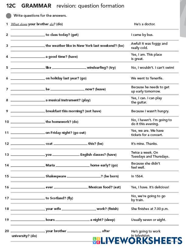 Created by goyzueta ENGLISH ENGLISH Edad 14+ level: BASIC 12 English Instrucciones del autor My Google Classroom Courses × 0 classes selected (0 students total) Quick Access Select all classes (0 classes) All Classes Loading courses... Cancelar Share Share to selected Course __COURSE_NAME__ __STUDENT_NAME__ (__STUDENT_EMAIL__) UNIT 12C Descargar Worksheet Validation Comprobar mis respuestas Emails my answers to my teacher Nombre completo Group/level Asignatura Teacher's email or key code Close Submit Validating worksheet... (12) Your answers have been sent to your teacher. Good luck! OK We encountered an error submitting your answers. Please try again. OK Anuncio | Ir sin anuncios Created by goyzueta ENGLISH ENGLISH Edad 14+ level: BASIC 12 English Instrucciones del autor