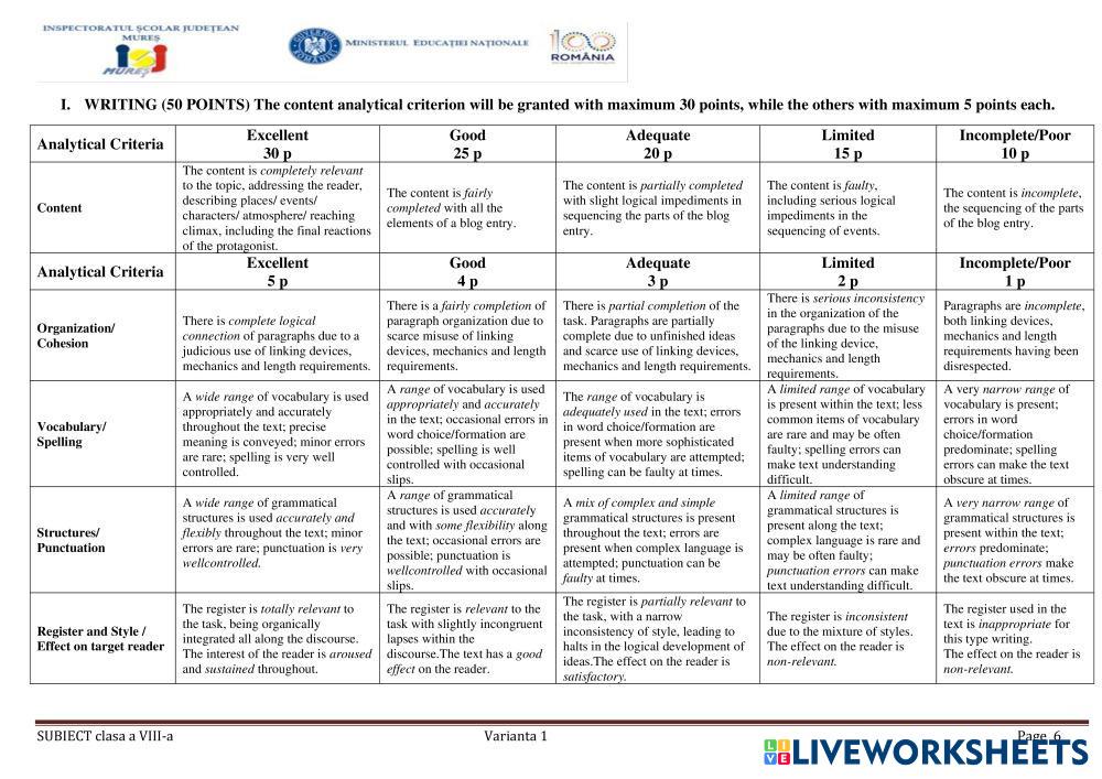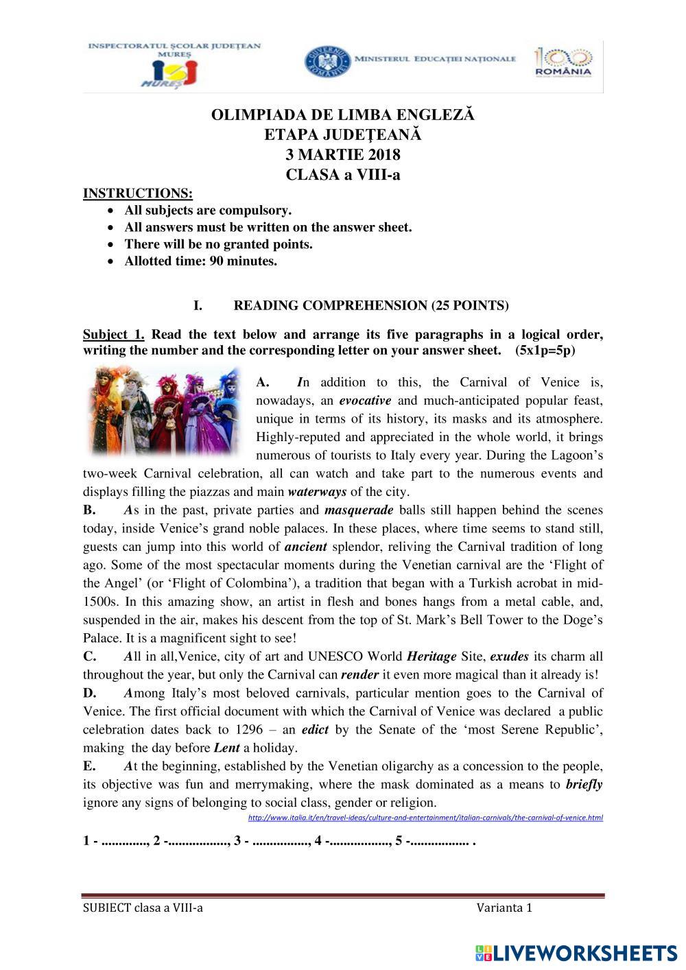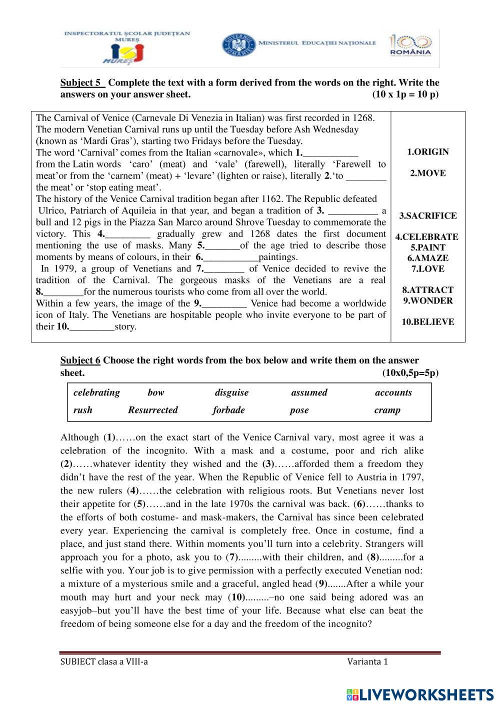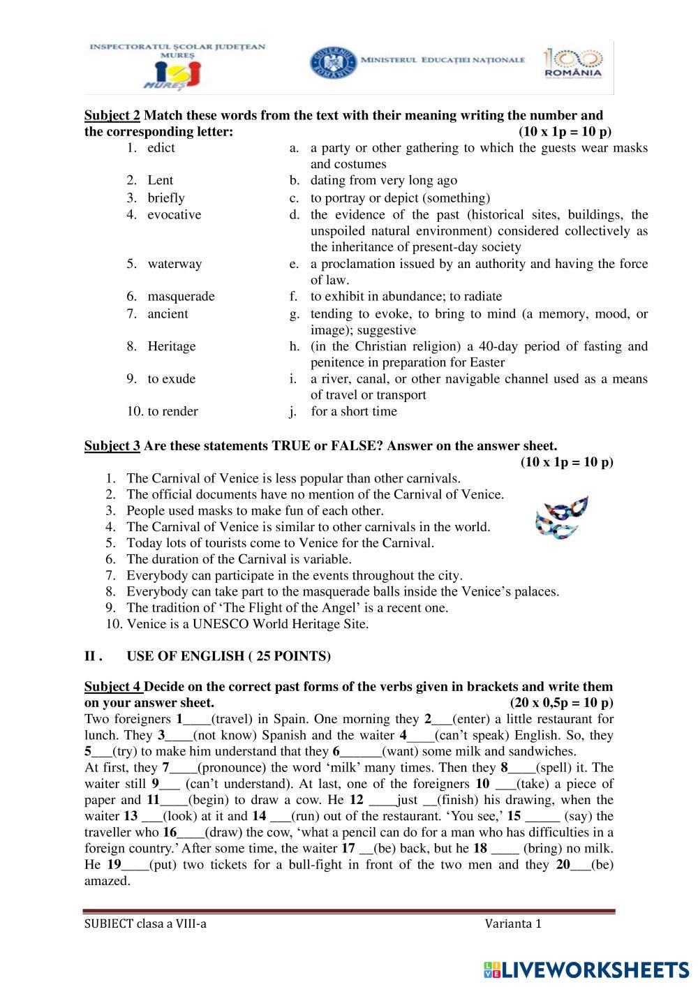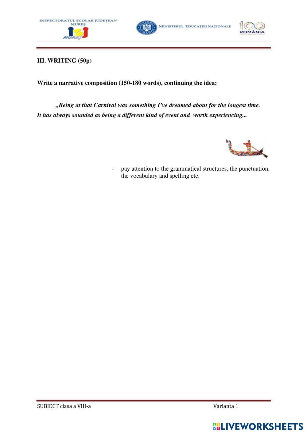 Solve the exercises. Write the composition on a paper.