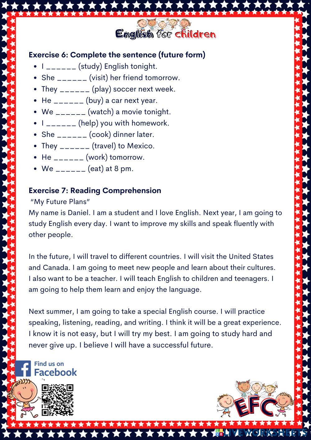 Created byEnglish for children ESL English B1 (Intermedio Bajo) Gramática English Instrucciones del autor READ AND FOLLOW THE INSTRUCTIONS. My Google Classroom Courses × 0 classes selected (0 students total) Quick Access Select all classes (0 classes) All Classes Loading courses... Cancelar Share Share to selected Course __COURSE_NAME__ __STUDENT_NAME__ (__STUDENT_EMAIL__) FUTURE TENSE WILL-GOING TO BY EFC Descargar Worksheet Validation Comprobar mis respuestas Emails my answers to my teacher Nombre completo Group/level Asignatura Teacher's email or key code Close Submit Validating worksheet... (12) Your answers have been sent to your teacher. Good luck! OK We encountered an error submitting your answers. Please try again. OK Anuncio | Ir sin anuncios Created byEnglish for children ESL English B1 (Intermedio Bajo) Gramática English Instrucciones del autor READ AND FOLLOW THE INSTRUCTIONS. Explora las hojas de trabajo U8 -Wheelchair-Accessibillty Issues- Barron Essential Words ESL B1 U8 -Wheelchair-Accessibillty Issues- Barron Essential Words Grammar - ESL U8 -Wheelchair-Accessibillty Issues- Barron Essential Words U8 -Why Are Women Leaving Science Careers?- Barron Essential Words ESL B1 U8 -Why Are Women Leaving Science Careers?- Barron Essential Words Grammar - ESL U8 -Why Are Women Leaving Science Careers?- Barron Essential Words U8 -Social Networking- Barron Essential Words ESL B1 U8 -Social Networking- Barron Essential Words Grammar - ESL U8 -Social Networking- Barron Essential Words U7 -Global Outsourcing- Barron Essential Words ESL B1 U7 -Global Outsourcing- Barron Essential Words Grammar - ESL U7 -Global Outsourcing- Barron Essential Words