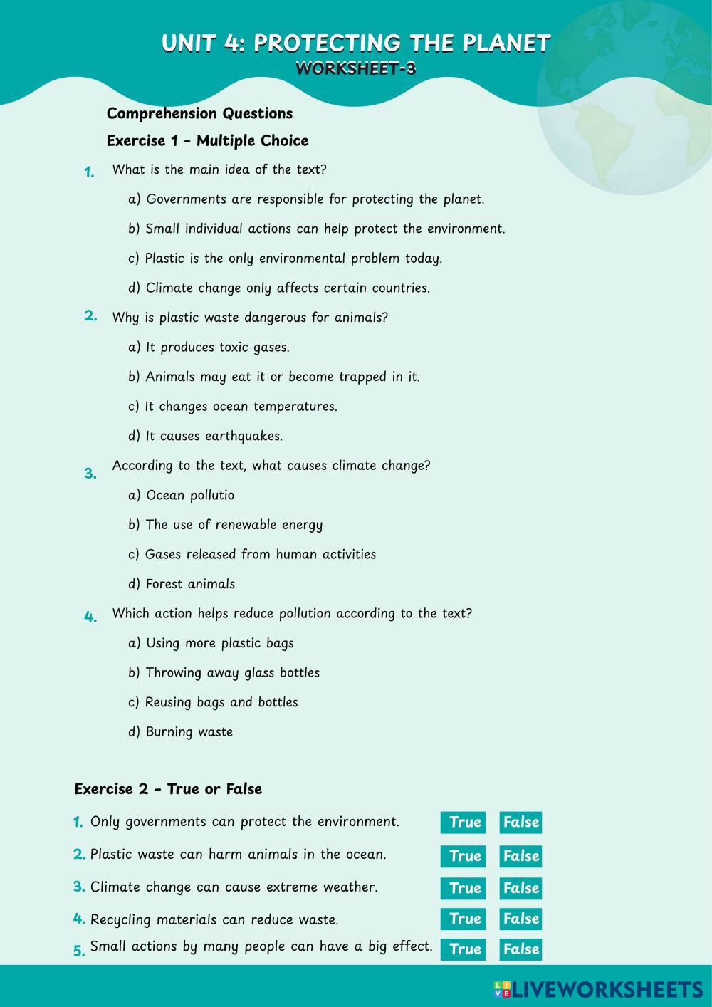 Comprehension Questions (Multiple choice)