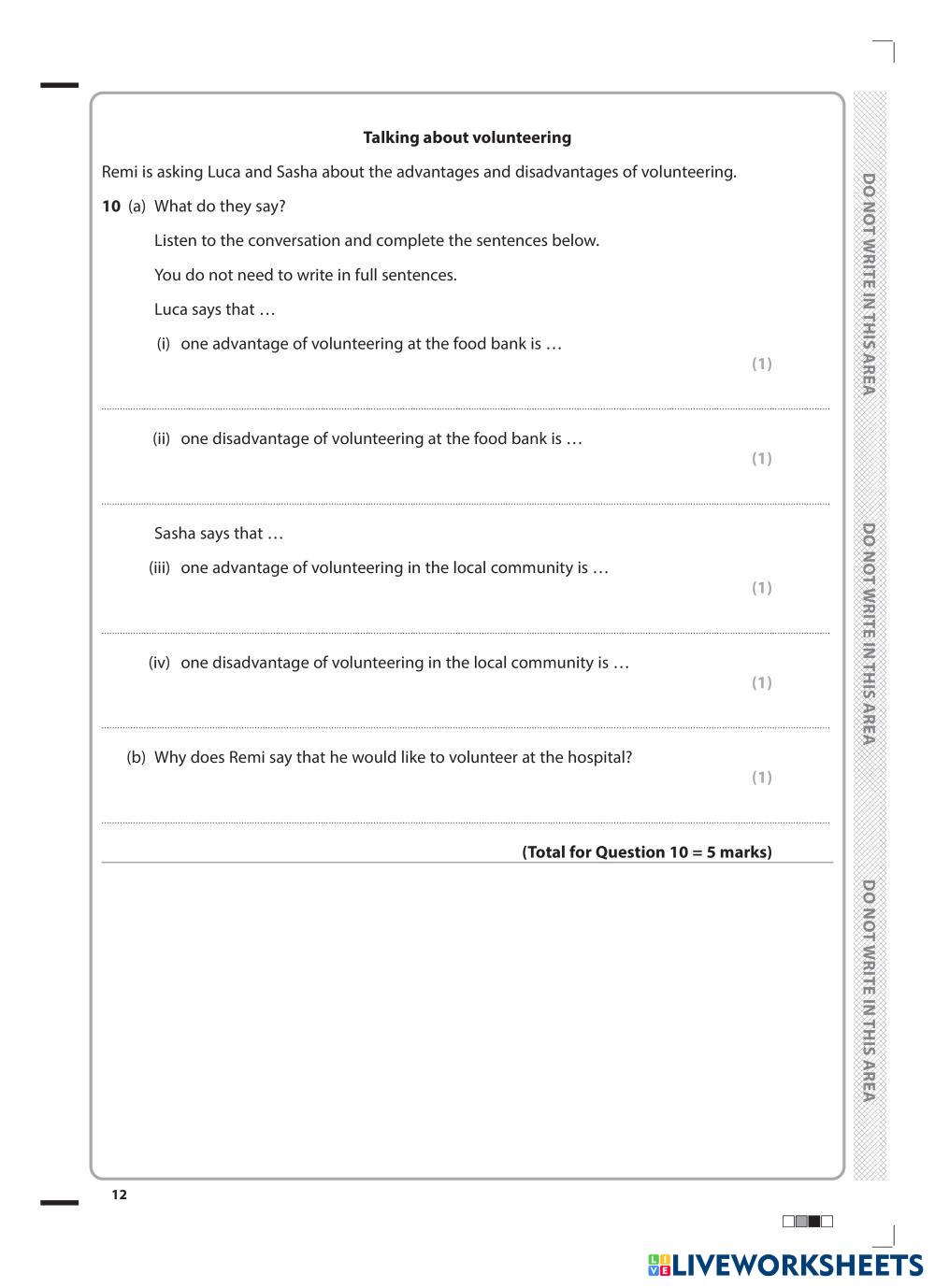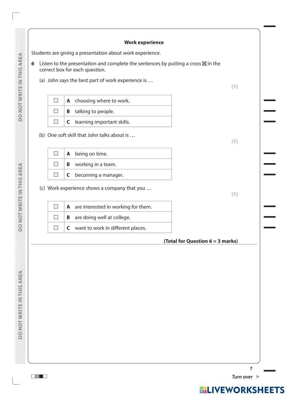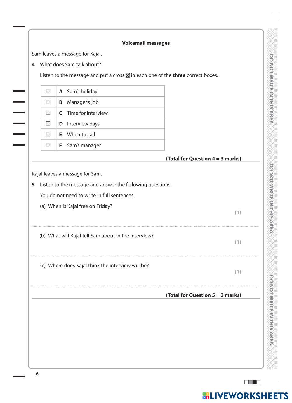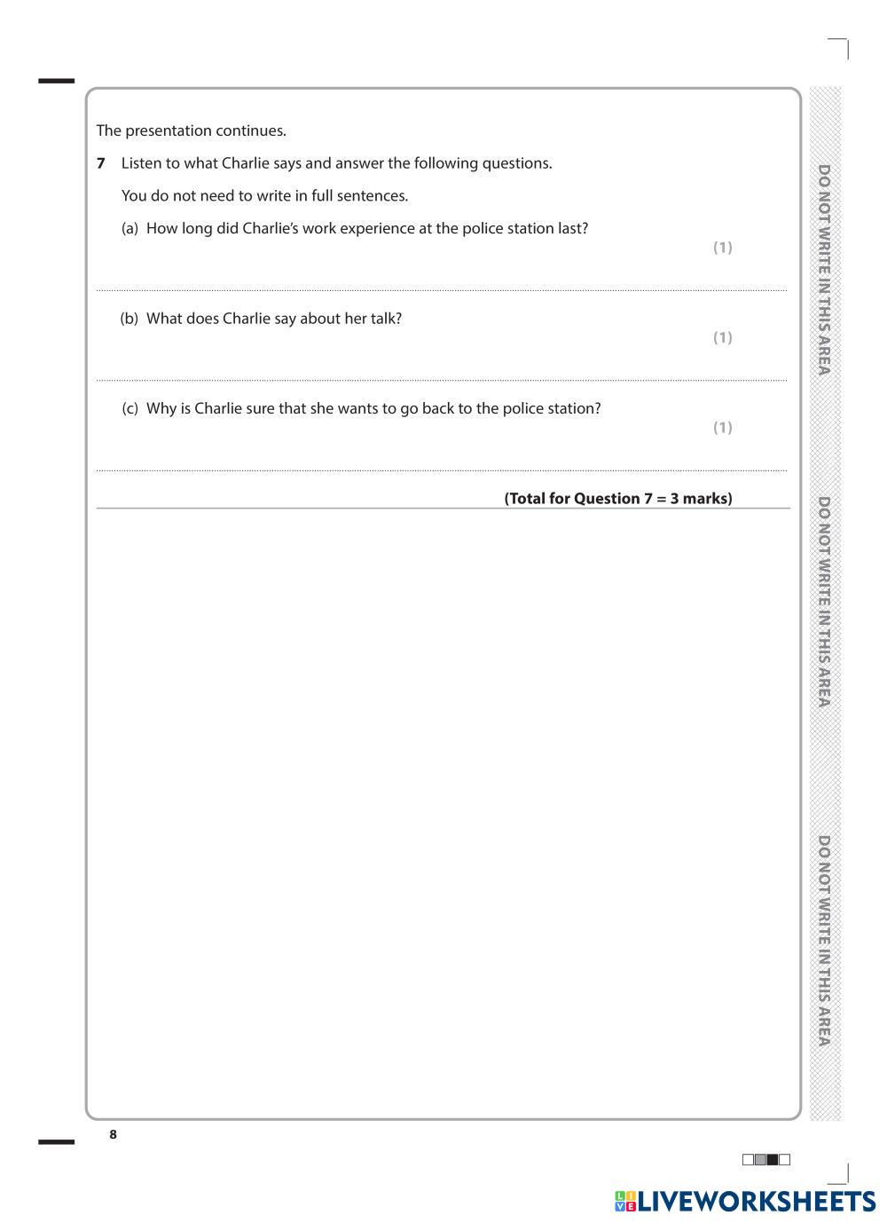 Created byJoe Htut ESL English B2 (Intermedio Alto) Escucha English Instrucciones del autor iG ESL - Question paper Modular 2 My Google Classroom Courses × 0 classes selected (0 students total) Quick Access Select all classes (0 classes) All Classes Loading courses... Cancelar Share Share to selected Course __COURSE_NAME__ __STUDENT_NAME__ (__STUDENT_EMAIL__) Pearson Edexcel ESL Listening Modular Mock Test -1 Descargar Worksheet Validation Comprobar mis respuestas Emails my answers to my teacher Nombre completo Group/level Asignatura Teacher's email or key code Close Submit Validating worksheet... (12) Your answers have been sent to your teacher. Good luck! OK We encountered an error submitting your answers. Please try again. OK Anuncio | Ir sin anuncios Created byJoe Htut ESL English B2 (Intermedio Alto) Escucha English Instrucciones del autor iG ESL - Question paper Modular 2 Explora las hojas de trabajo [DICTATION]CAM 19 - TEST 4 - PART 4 Tree planting ESL B2 [DICTATION]CAM 19 - TEST 4 - PART 4 Tree planting Listening - ESL CAM 19 - TEST 4 - PART 4 Tree planting [TEST]CAM 19 - TEST 3 - PART 4 Microplastics ESL B2 [TEST]CAM 19 - TEST 3 - PART 4 Microplastics Listening - ESL CAM 19 - TEST 3 - PART 4 Microplastics Job interview ESL B2 Job interview Listening - ESL Listen to this job interview and fill in the gaps [Test] CAM 20 - TEST 1 - PART 2 POTTERY ESL B2 [Test] CAM 20 - TEST 1 - PART 2 POTTERY Listening - ESL Questions 11–16 Choose the correct letter, A, B or C.