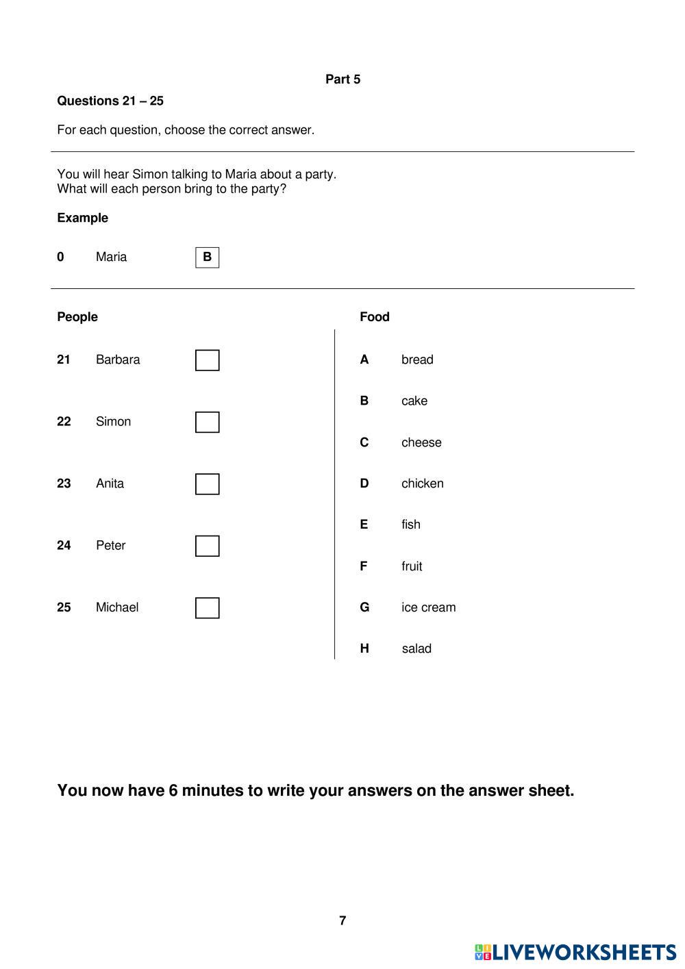 There are five parts to the test. Each question carries one mark. You will hear each piece twice. For each part of the test there will be time for you to look through the questions and time for you to check your answers.