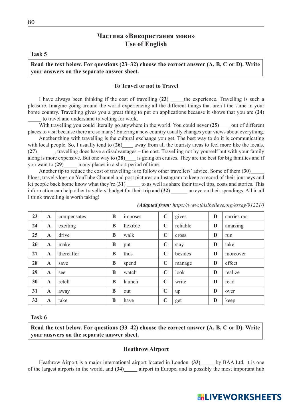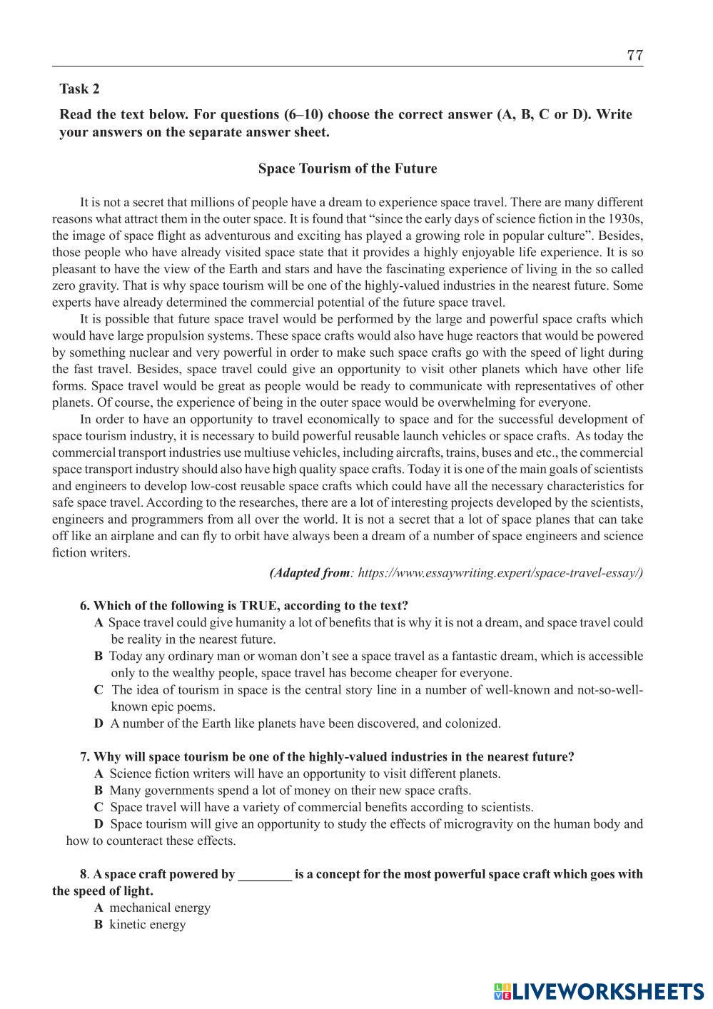Created by Gondyuk ESL English B2 (Intermedio Alto) Lectura English Instrucciones del autor be attentive and do the tasks. My Google Classroom Courses × 0 classes selected (0 students total) Quick Access Select all classes (0 classes) All Classes Loading courses... Cancelar Share Share to selected Course __COURSE_NAME__ __STUDENT_NAME__ (__STUDENT_EMAIL__) Єві Test 7 Descargar Worksheet Validation Comprobar mis respuestas Emails my answers to my teacher Nombre completo Group/level Asignatura Teacher's email or key code Close Submit Validating worksheet... (12) Your answers have been sent to your teacher. Good luck! OK We encountered an error submitting your answers. Please try again. OK Anuncio | Ir sin anuncios Created by Gondyuk ESL English B2 (Intermedio Alto) Lectura English Instrucciones del autor be attentive and do the tasks. Explora las hojas de trabajo NMT Test 5 ESL B2 NMT Test 5 Reading - ESL Be attentive and do the task Open World B2 Unit 5 Grab Some Culture ESL B2 Open World B2 Unit 5 Grab Some Culture Reading - ESL Follow the instructions Reading Comprehension: Murdle (F/D-ish) ESL B2 Reading Comprehension: Murdle (F/D-ish) Reading - ESL ... ECCE Screening Test ESL B2 ECCE Screening Test Reading - ESL Complete all activities
