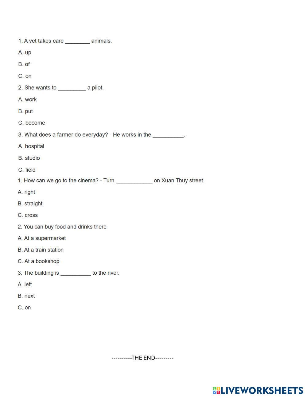 Created bytranuyen ESL English A2 (Básico) Lectura English Instrucciones del autor . My Google Classroom Courses × 0 classes selected (0 students total) Quick Access Select all classes (0 classes) All Classes Loading courses... Cancelar Share Share to selected Course __COURSE_NAME__ __STUDENT_NAME__ (__STUDENT_EMAIL__) REVIEW MID-TERM 2 Descargar Worksheet Validation Comprobar mis respuestas Emails my answers to my teacher Nombre completo Group/level Asignatura Teacher's email or key code Close Submit Validating worksheet... (12) Your answers have been sent to your teacher. Good luck! OK We encountered an error submitting your answers. Please try again. OK Anuncio | Ir sin anuncios Created bytranuyen ESL English A2 (Básico) Lectura English Instrucciones del autor . Explora las hojas de trabajo WHO WAS CHARLES DARWIN? ESL A2 WHO WAS CHARLES DARWIN? Reading - ESL FOLLOW THE INSTRUCTIONS Challenge KB3 U4 IN THE CITY READ ESL A2 Challenge KB3 U4 IN THE CITY READ Reading - ESL Read the story. Choose the words from the box. Write the correct word next to numbers 1–5. There is one example. Homework 21 ESL A2 Homework 21 Reading - ESL Reading Homework 19 ESL A2 Homework 19 Reading - ESL Reading