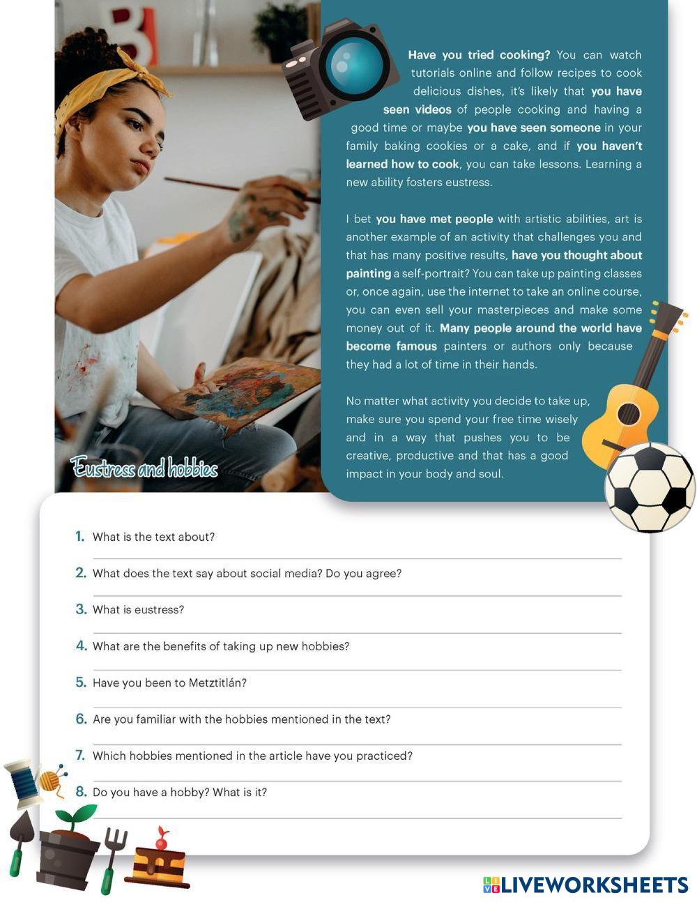 Read the text and answer the questions. Write COMPLETE sentences (subject+verb+complement).