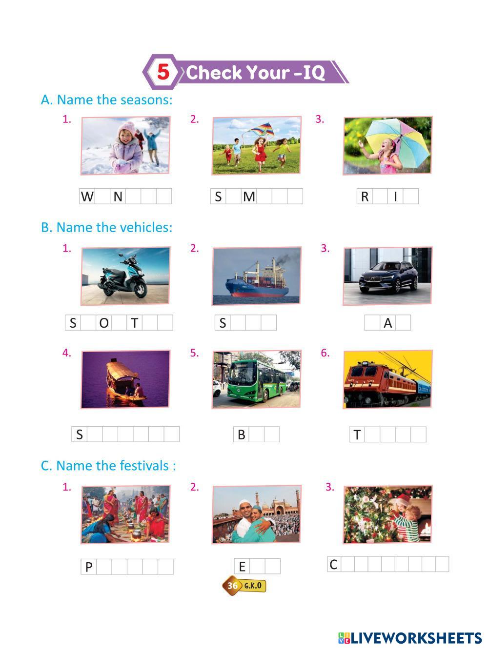 Created by Rozisharma ESL English A1 (Principiante) Vocabulario English Instrucciones del autor ENG My Google Classroom Courses × 0 classes selected (0 students total) Quick Access Select all classes (0 classes) All Classes Loading courses... Cancelar Share Share to selected Course __COURSE_NAME__ __STUDENT_NAME__ (__STUDENT_EMAIL__) GK CHAP 25_1 Descargar Worksheet Validation Comprobar mis respuestas Emails my answers to my teacher Nombre completo Group/level Asignatura Teacher's email or key code Close Submit Validating worksheet... (12) Your answers have been sent to your teacher. Good luck! OK We encountered an error submitting your answers. Please try again. OK Anuncio | Ir sin anuncios Created by Rozisharma ESL English A1 (Principiante) Vocabulario English Instrucciones del autor ENG Explora las hojas de trabajo Sports ESL A1 Sports Vocabulary - ESL Complete the sheet B1 - Lesson 05 - Days of the week, Months ESL A1 B1 - Lesson 05 - Days of the week, Months Vocabulary - ESL Students will practice days of the week and months B1 - Lesson 04 - Days of the week, Months, Dates ESL A1 B1 - Lesson 04 - Days of the week, Months, Dates Vocabulary - ESL Days of the week, Months and Dates Daily Routines ESL A1 Daily Routines Vocabulary - ESL English as a second language For practicing simple present with daily routines. Main content: Daily Routines Other contents: Simple present