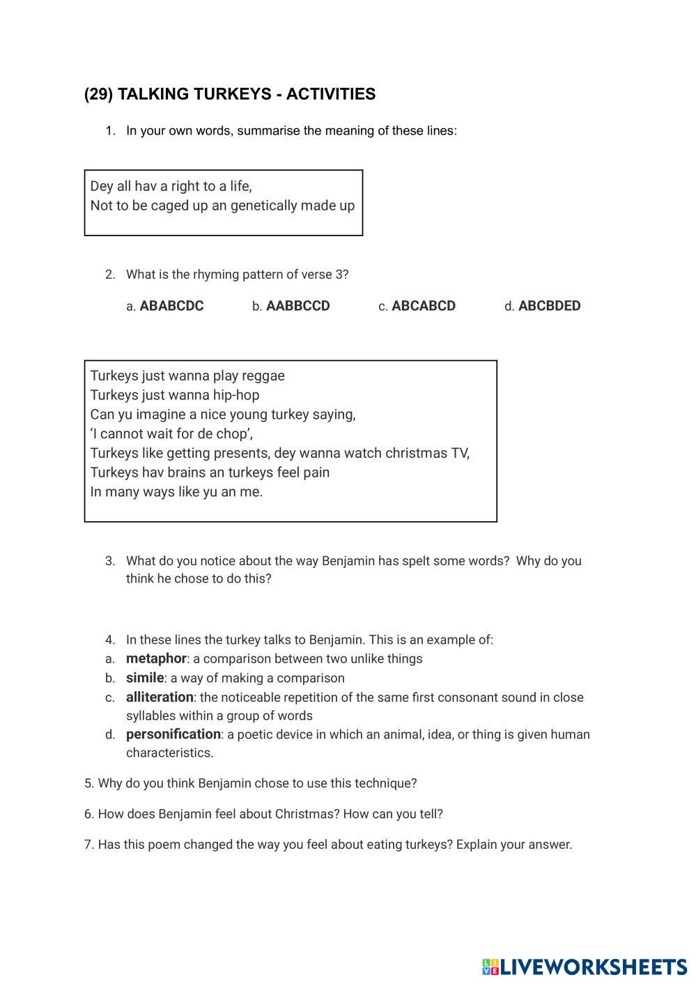 POEM: TALKING TURKEYS BY BENJAMIN ZEPHANIAH