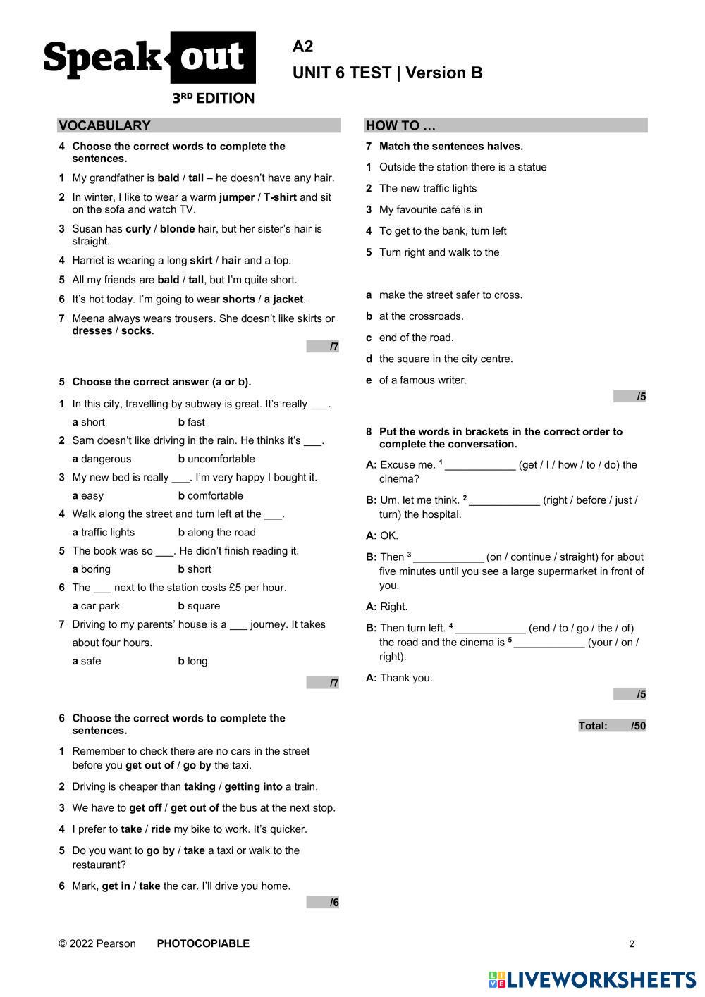 Created by Aleks2020 ESL English A2 (Básico) Vocabulario English Instrucciones del autor SO3_A2_Unit_Test_U6B My Google Classroom Courses × 0 classes selected (0 students total) Quick Access Select all classes (0 classes) All Classes Loading courses... Cancelar Share Share to selected Course __COURSE_NAME__ __STUDENT_NAME__ (__STUDENT_EMAIL__) SO3_A2_Unit_Test_U6B Descargar Worksheet Validation Comprobar mis respuestas Emails my answers to my teacher Nombre completo Group/level Asignatura Teacher's email or key code Close Submit Validating worksheet... (12) Your answers have been sent to your teacher. Good luck! OK We encountered an error submitting your answers. Please try again. OK Anuncio | Ir sin anuncios Created by Aleks2020 ESL English A2 (Básico) Vocabulario English Instrucciones del autor SO3_A2_Unit_Test_U6B Explora las hojas de trabajo adjectives ESL A2 adjectives Vocabulary - ESL choose the correct answer Countries and adjectives ESL A2 Countries and adjectives Vocabulary - ESL Listen and learn the vocabulary. Complete the activities about countries and nationalities. Main content: Countries and nationalities Comparative and superlative ESL A2 Comparative and superlative Vocabulary - ESL English as a second language Main content: Comparatives and superlatives Weekly Unit Test ESL A2 Weekly Unit Test Vocabulary - ESL Complete the test.