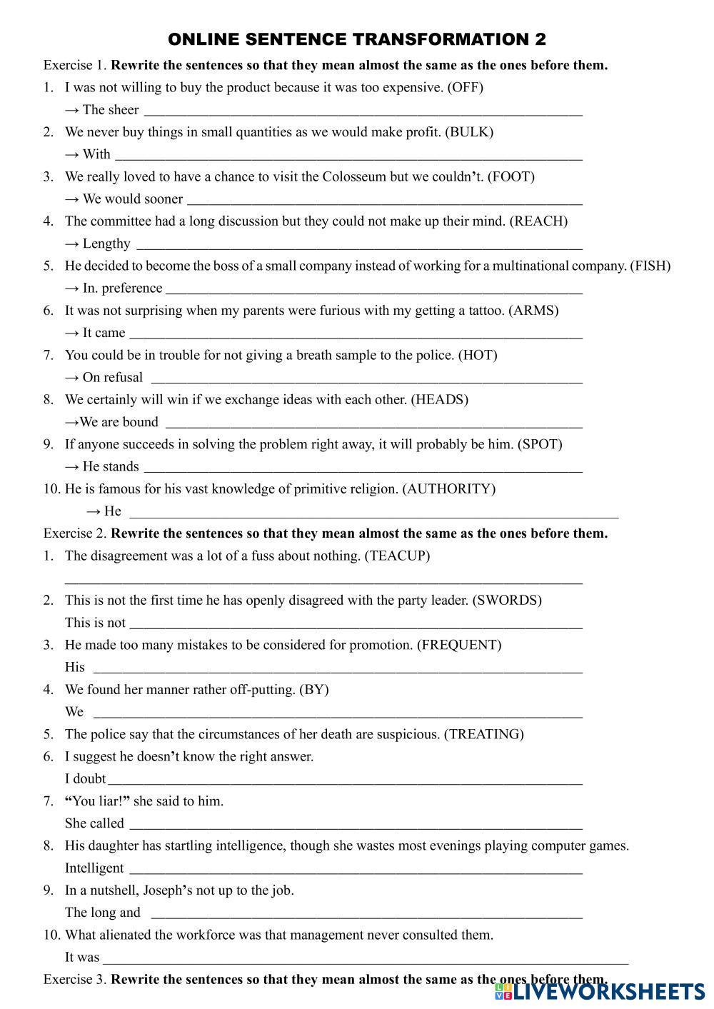 STRUCTURE CHECK 18. SENTENCE TRANSFORMATION