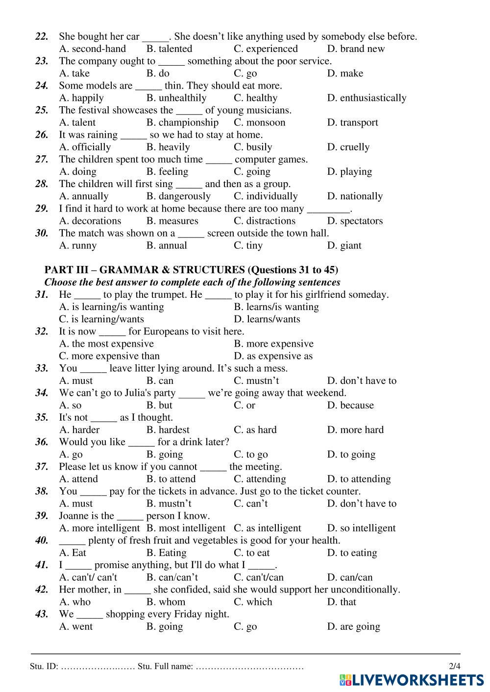 Do the test carefully. Write all the answer in capital letters.