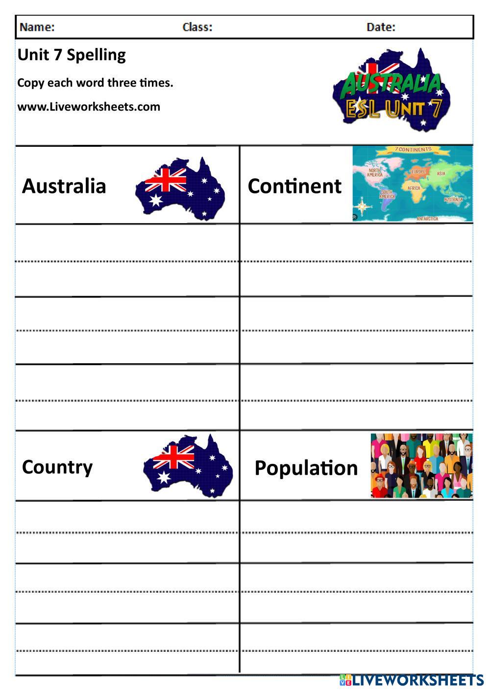 Created byDave Billinge ESL Vocabulary Edad 7-11 level: 3 English Author's Instructions My Google Classroom Courses × 0 classes selected (0 students total) Quick Access Select all classes (0 classes) All Classes Loading courses... Cancelar Share Share to selected Course __COURSE_NAME__ __STUDENT_NAME__ (__STUDENT_EMAIL__) Unit 7 Australia Vocabulary Download Worksheet Validation Comprobar mis respuestas Emails my answers to my teacher Nombre completo Group/level Asignatura Teacher's email or key code Close Submit Validating worksheet... (12) Your answers have been sent to your teacher. Good luck! OK We encountered an error submitting your answers. Please try again. OK Anuncio | Ir sin anuncios Created byDave Billinge ESL Vocabulary Edad 7-11 level: 3 English Author's Instructions