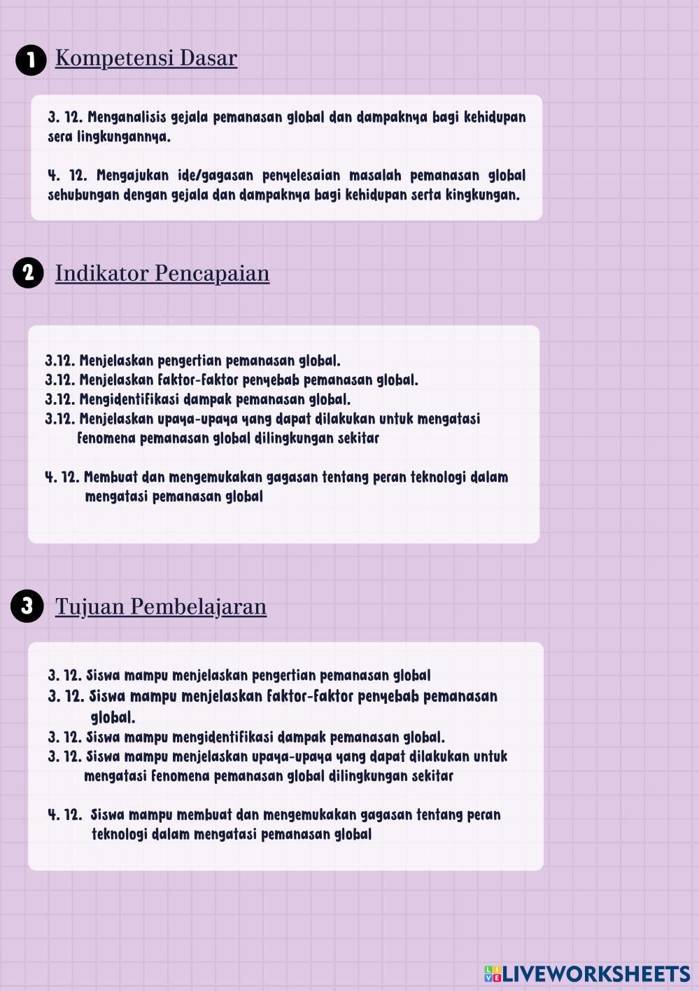 Created byNurul Izzah Fisika Pemanasan Global Edad 16+ level: 11 English Instrucciones del autor My Google Classroom Courses × 0 classes selected (0 students total) Quick Access Select all classes (0 classes) All Classes Loading courses... Cancelar Share Share to selected Course __COURSE_NAME__ __STUDENT_NAME__ (__STUDENT_EMAIL__) E-LKPD PEMANASAN GLOBAL Descargar Worksheet Validation Comprobar mis respuestas Emails my answers to my teacher Nombre completo Group/level Asignatura Teacher's email or key code Close Submit Validating worksheet... (12) Your answers have been sent to your teacher. Good luck! OK We encountered an error submitting your answers. Please try again. OK Anuncio | Ir sin anuncios Created byNurul Izzah Fisika Pemanasan Global Edad 16+ level: 11 English Instrucciones del autor