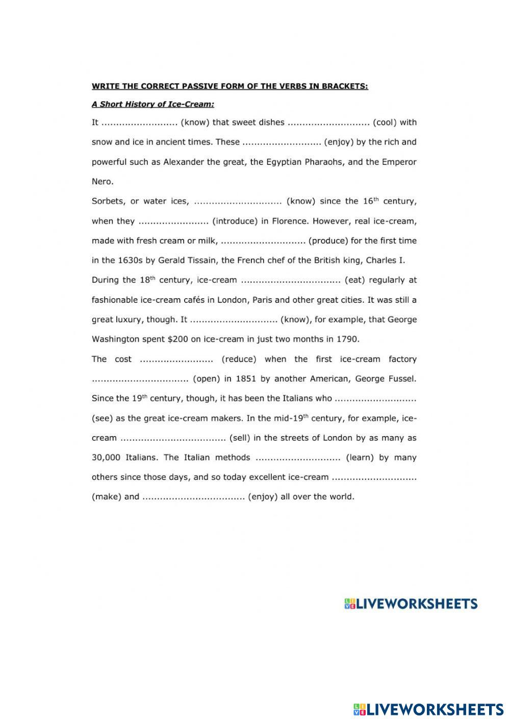 Created byIrena Zlobin Grammar Passive voice Edad 16+ level: intermediate English Instrucciones del autor My Google Classroom Courses × 0 classes selected (0 students total) Quick Access Select all classes (0 classes) All Classes Loading courses... Cancelar Share Share to selected Course __COURSE_NAME__ __STUDENT_NAME__ (__STUDENT_EMAIL__) Passive Descargar Worksheet Validation Comprobar mis respuestas Emails my answers to my teacher Nombre completo Group/level Asignatura Teacher's email or key code Close Submit Validating worksheet... (12) Your answers have been sent to your teacher. Good luck! OK We encountered an error submitting your answers. Please try again. OK Anuncio | Ir sin anuncios Created byIrena Zlobin Grammar Passive voice Edad 16+ level: intermediate English Instrucciones del autor
