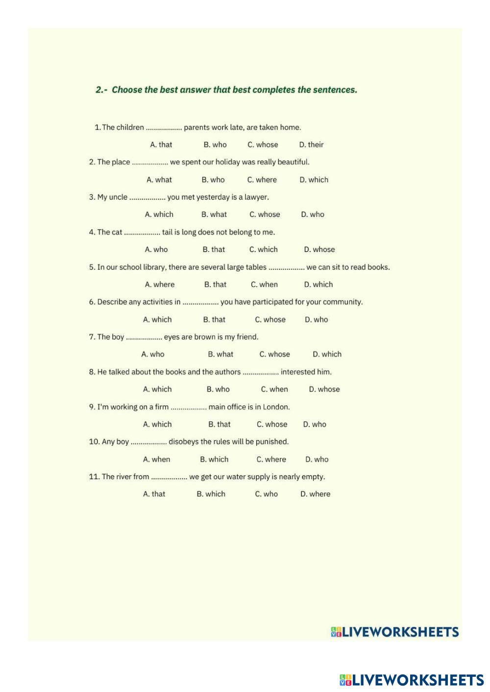 Created byAmanda Suarez inglese Inglese Edad 18+ level: A1 English Instrucciones del autor MSN LD NLKA My Google Classroom Courses × 0 classes selected (0 students total) Quick Access Select all classes (0 classes) All Classes Loading courses... Cancelar Share Share to selected Course __COURSE_NAME__ __STUDENT_NAME__ (__STUDENT_EMAIL__) respuestas Descargar Worksheet Validation Comprobar mis respuestas Emails my answers to my teacher Nombre completo Group/level Asignatura Teacher's email or key code Close Submit Validating worksheet... (12) Your answers have been sent to your teacher. Good luck! OK We encountered an error submitting your answers. Please try again. OK Anuncio | Ir sin anuncios Created byAmanda Suarez inglese Inglese Edad 18+ level: A1 English Instrucciones del autor MSN LD NLKA