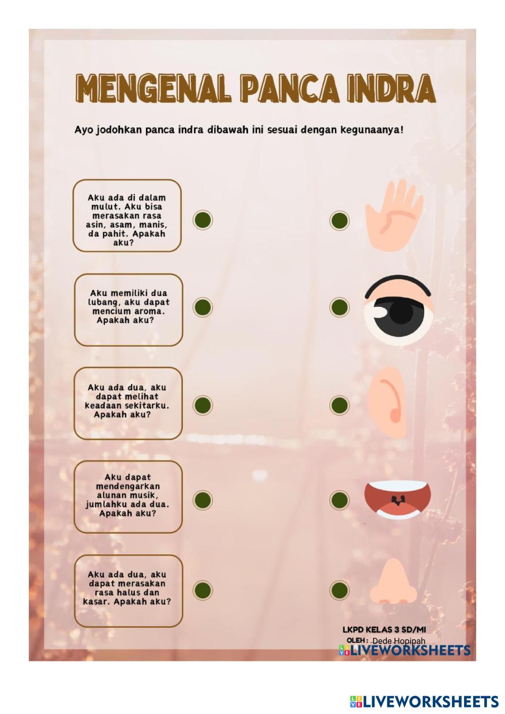 Created byDedehopipah IPAS Fungsi alat indra manusia Edad 7-15 level: 3 English Instrucciones del autor My Google Classroom Courses × 0 classes selected (0 students total) Quick Access Select all classes (0 classes) All Classes Loading courses... Cancelar Share Share to selected Course __COURSE_NAME__ __STUDENT_NAME__ (__STUDENT_EMAIL__) Ilmu pengetahuan alam dan sosial Descargar Worksheet Validation Comprobar mis respuestas Emails my answers to my teacher Nombre completo Group/level Asignatura Teacher's email or key code Close Submit Validating worksheet... (12) Your answers have been sent to your teacher. Good luck! OK We encountered an error submitting your answers. Please try again. OK Anuncio | Ir sin anuncios Created byDedehopipah IPAS Fungsi alat indra manusia Edad 7-15 level: 3 English Instrucciones del autor