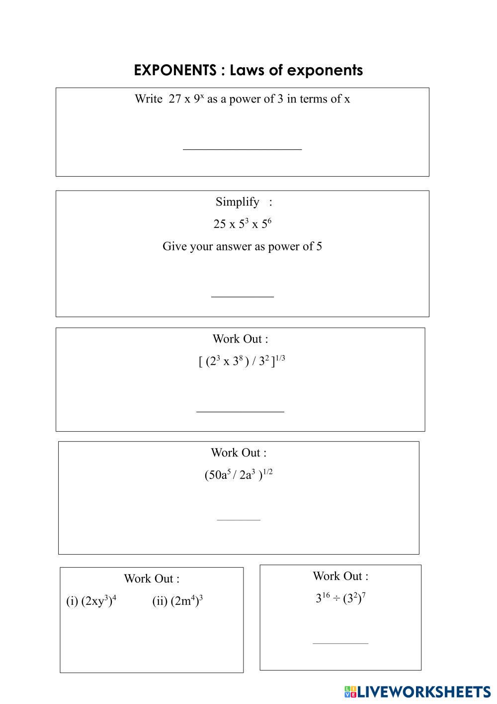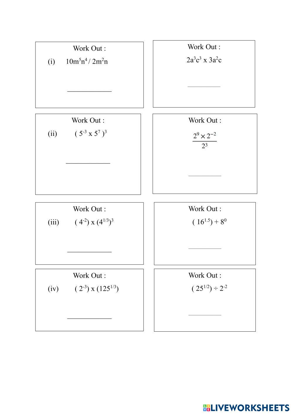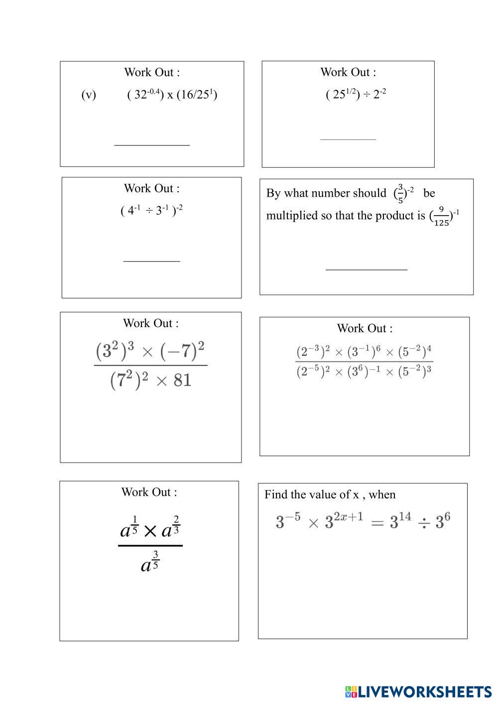 Created bySIMRAN NARANG Math Exponens Edad 10-18 level: 6-7 English Instrucciones del autor My Google Classroom Courses × 0 classes selected (0 students total) Quick Access Select all classes (0 classes) All Classes Loading courses... Cancelar Share Share to selected Course __COURSE_NAME__ __STUDENT_NAME__ (__STUDENT_EMAIL__) EXPONENTS Descargar Worksheet Validation Comprobar mis respuestas Emails my answers to my teacher Nombre completo Group/level Asignatura Teacher's email or key code Close Submit Validating worksheet... (12) Your answers have been sent to your teacher. Good luck! OK We encountered an error submitting your answers. Please try again. OK Anuncio | Ir sin anuncios Created bySIMRAN NARANG Math Exponens Edad 10-18 level: 6-7 English Instrucciones del autor