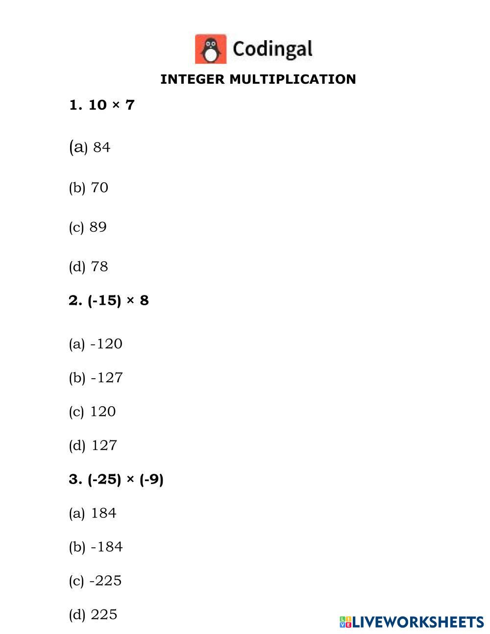 Created byKalaivani Sivan MATHEMATICS MULTIPLICATION INTEGER Edad 7-18 level: LEVEL1 English Instrucciones del autor My Google Classroom Courses × 0 classes selected (0 students total) Quick Access Select all classes (0 classes) All Classes Loading courses... Cancelar Share Share to selected Course __COURSE_NAME__ __STUDENT_NAME__ (__STUDENT_EMAIL__) CODINGAL Descargar Worksheet Validation Comprobar mis respuestas Emails my answers to my teacher Nombre completo Group/level Asignatura Teacher's email or key code Close Submit Validating worksheet... (12) Your answers have been sent to your teacher. Good luck! OK We encountered an error submitting your answers. Please try again. OK Anuncio | Ir sin anuncios Created byKalaivani Sivan MATHEMATICS MULTIPLICATION INTEGER Edad 7-18 level: LEVEL1 English Instrucciones del autor