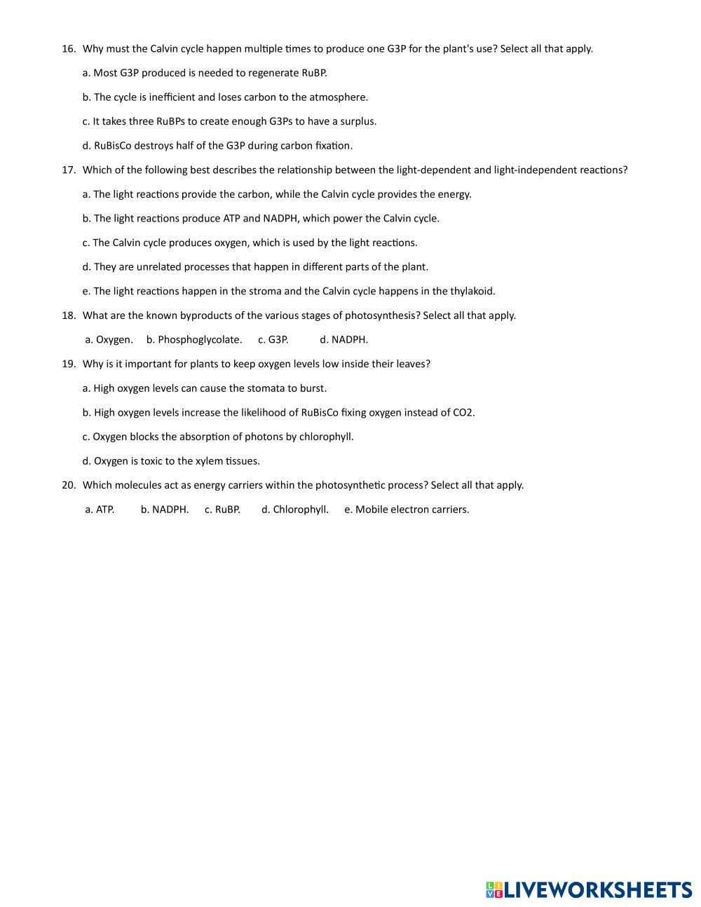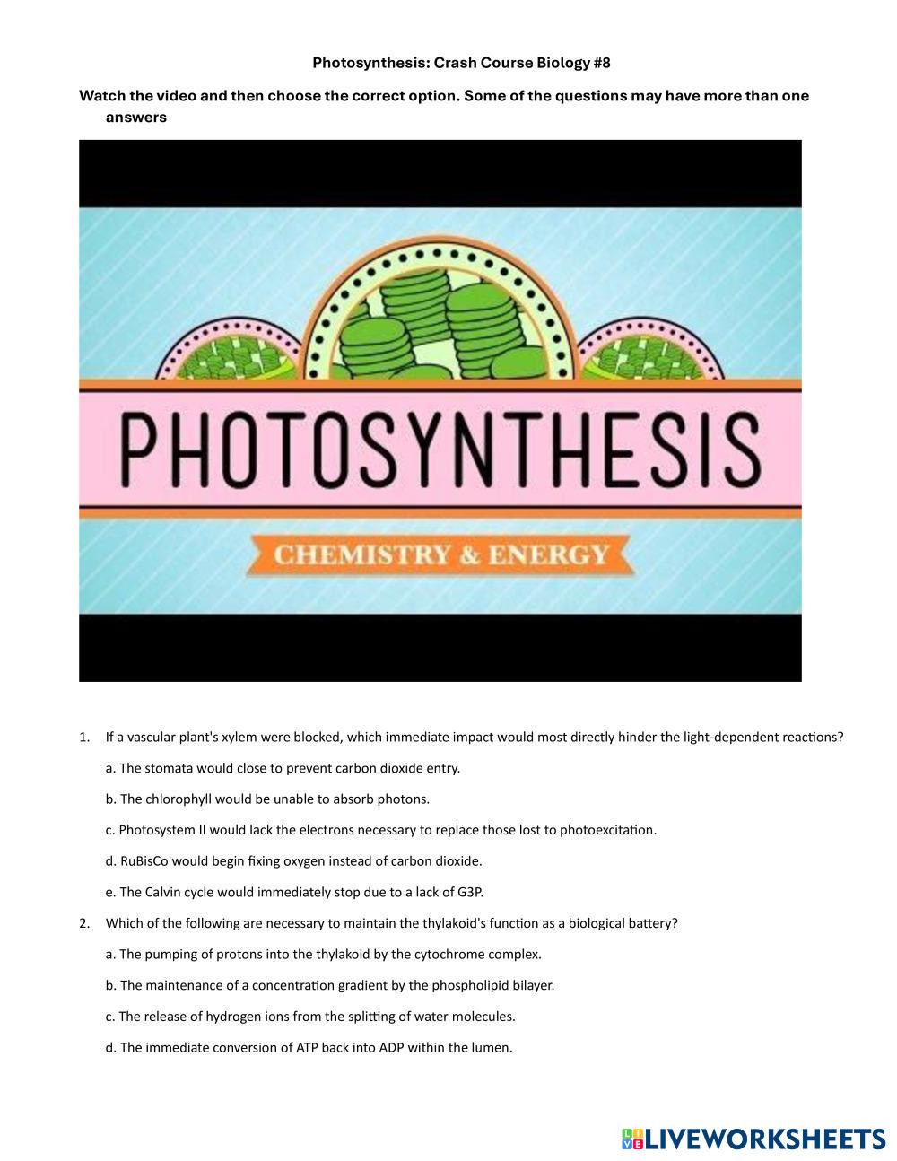 שאלות בנושא פוטוסינתזה