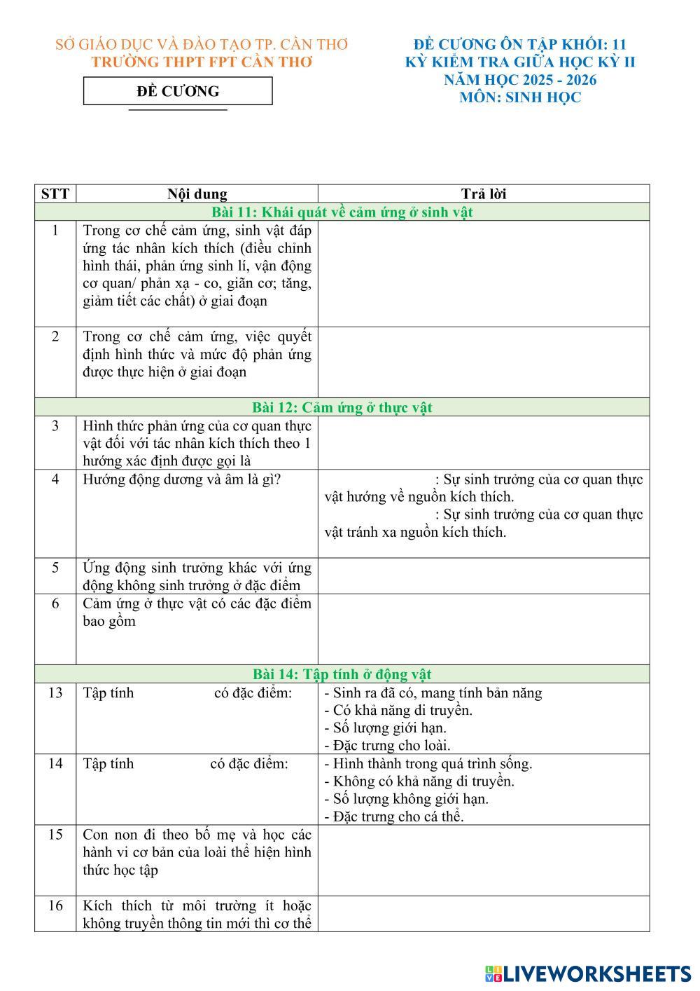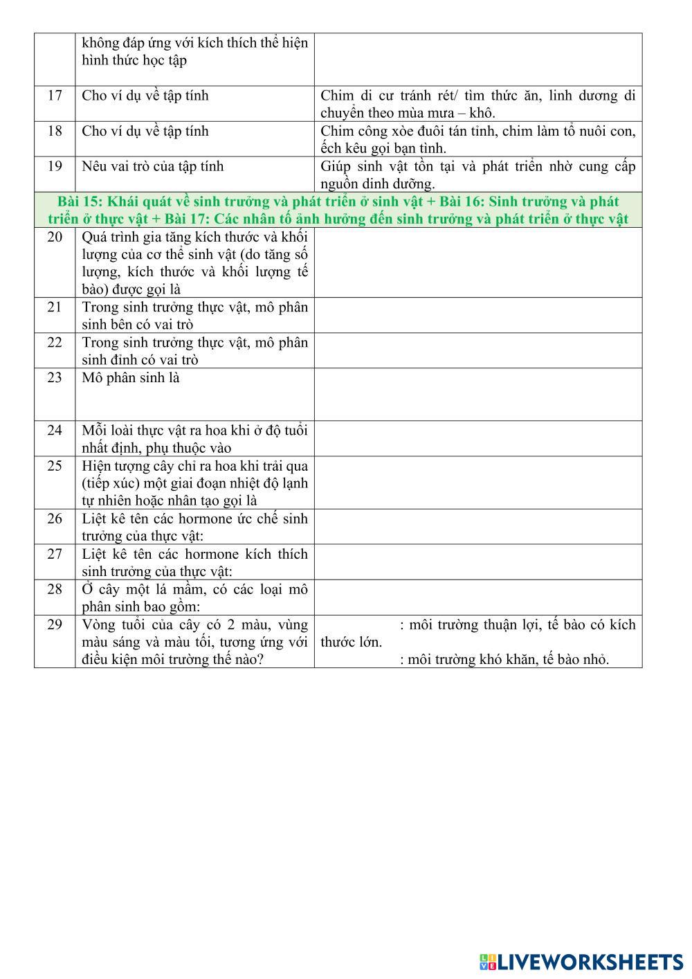 Created byLê Hoàng Thức Ciencias Bachillerato 1º de Bachillerato Biología English Instrucciones del autor Ôn tập My Google Classroom Courses × 0 classes selected (0 students total) Quick Access Select all classes (0 classes) All Classes Loading courses... Cancelar Share Share to selected Course __COURSE_NAME__ __STUDENT_NAME__ (__STUDENT_EMAIL__) SH11. ÔN TẬP KIỂM TRA GHKII Descargar Worksheet Validation Comprobar mis respuestas Emails my answers to my teacher Nombre completo Group/level Asignatura Teacher's email or key code Close Submit Validating worksheet... (12) Your answers have been sent to your teacher. Good luck! OK We encountered an error submitting your answers. Please try again. OK Anuncio | Ir sin anuncios Created byLê Hoàng Thức Ciencias Bachillerato 1º de Bachillerato Biología English Instrucciones del autor Ôn tập Explora las hojas de trabajo LKPD Harmoni Dalam Ekosistem Science 11th grade LKPD Harmoni Dalam Ekosistem Biology - Science 🔍 Ayo Belajar dan Temukan Jawabannya! Bacalah materi pada flipbook dengan teliti, amati gambar yang tersedia, lalu diskusikan bersama temanmu untuk menjawab pertanyaan pada LKPD ini. HSB GAP NUTRITION 1 Science 11th grade HSB GAP NUTRITION 1 Biology - Science Introduction to Nutrients, macronutrients and micronutrients. PHT- TIM HIỂU KHÁI NIỆM CẢM ỨNG Ở ĐỘNG VẬT Science 11th grade PHT- TIM HIỂU KHÁI NIỆM CẢM ỨNG Ở ĐỘNG VẬT Biology - Science HOC SINH HOAN THANH PHIEU HOC TẬP LEVEL 6 SISTEM LIMFATIK & GANGGUAN SISTEM PEREDARAN DARAH Science 11th grade LEVEL 6 SISTEM LIMFATIK & GANGGUAN SISTEM PEREDARAN DARAH Biology - Science SILAHKAN KERJAKAN DENGAN TELITI DAN TEPAT!