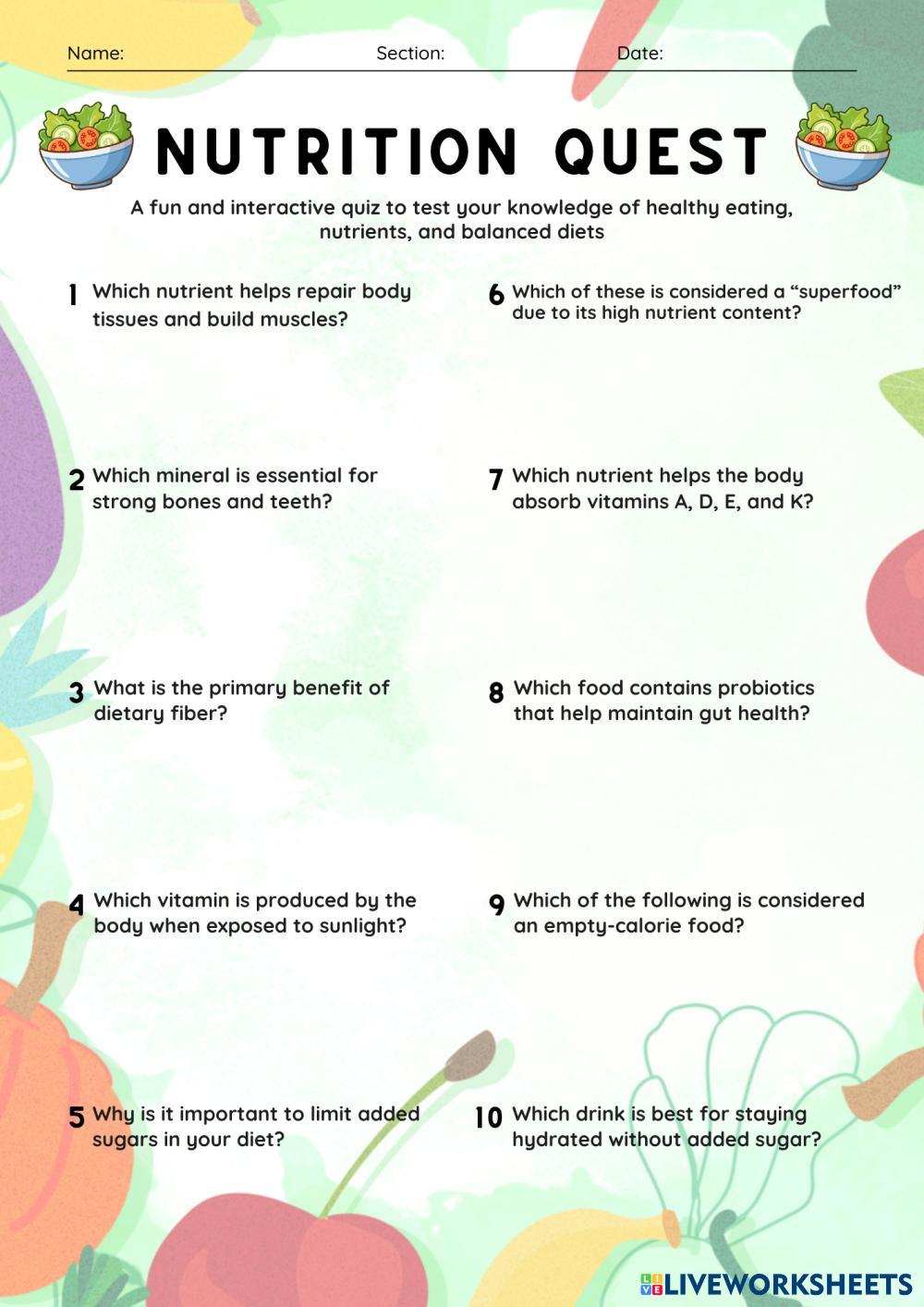 Please read each question carefully and choose the best answer. This quiz is designed to test your knowledge of healthy eating and basic nutrition.