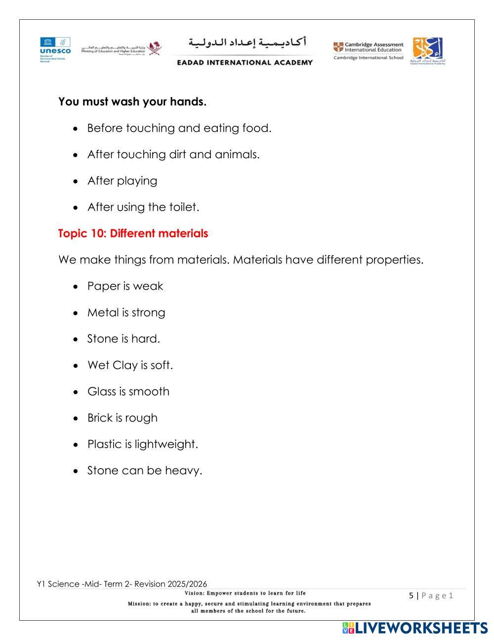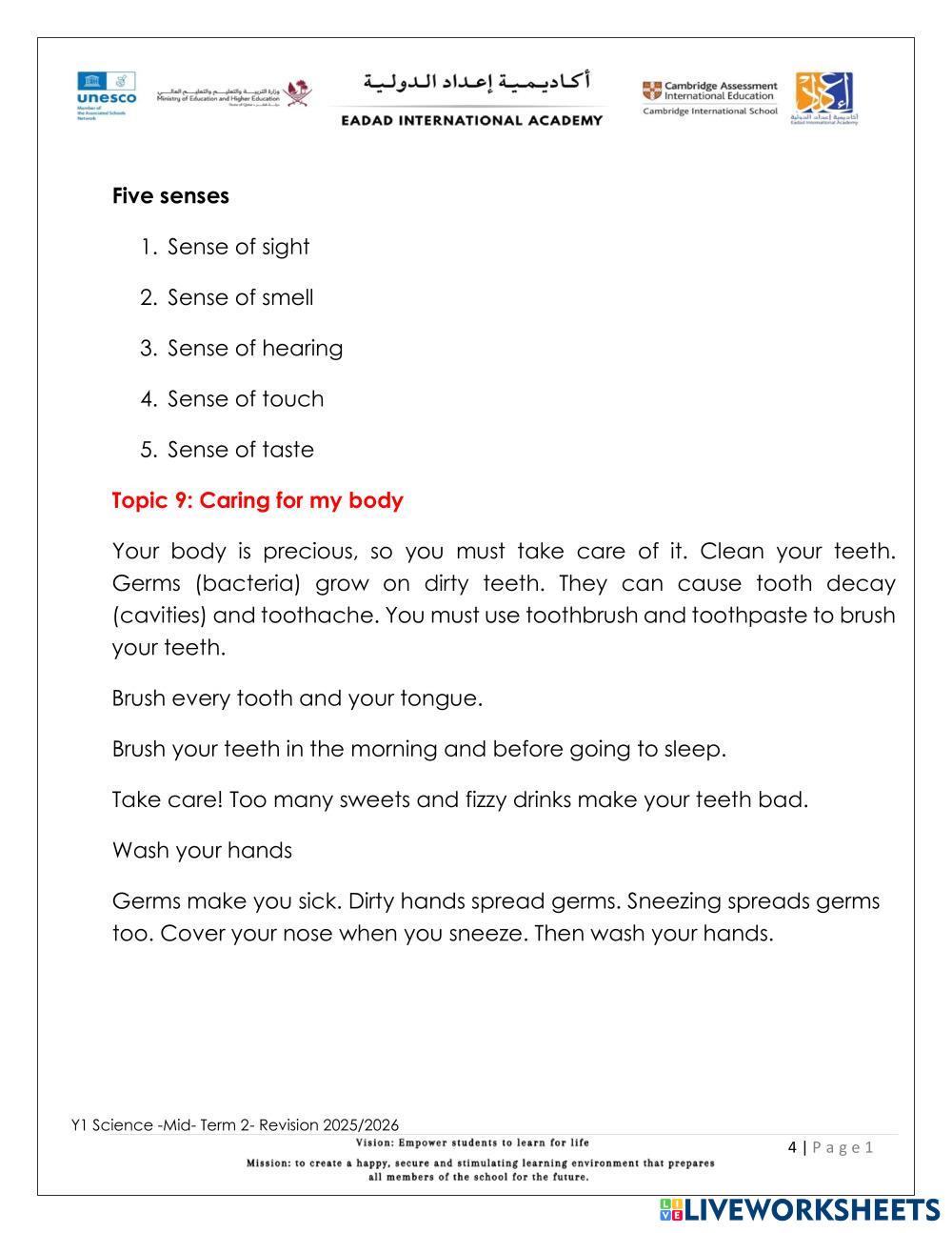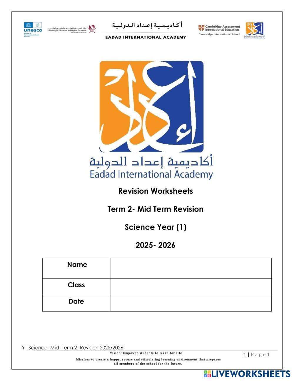 Complete the Revision Worksheet for Science.