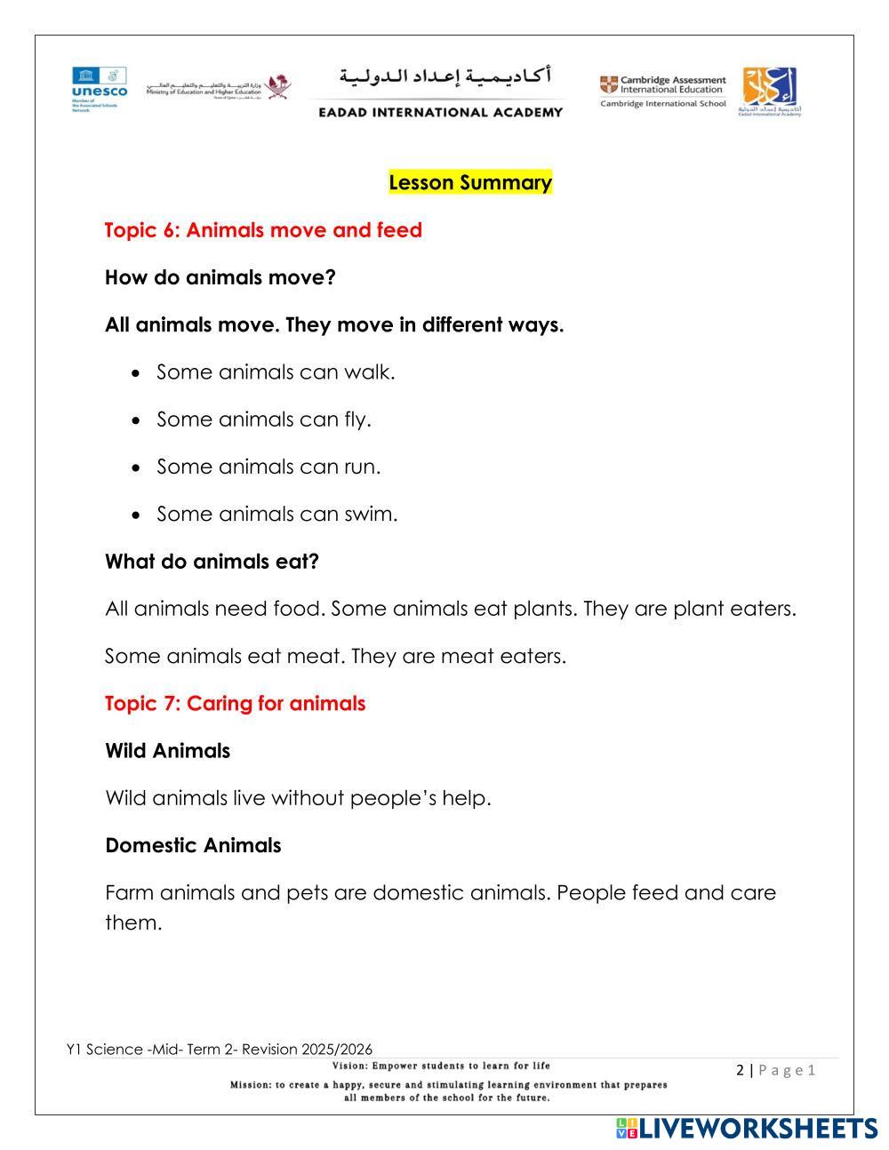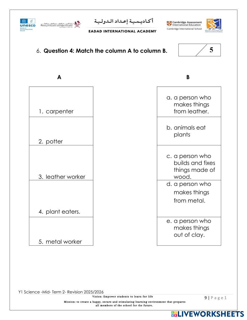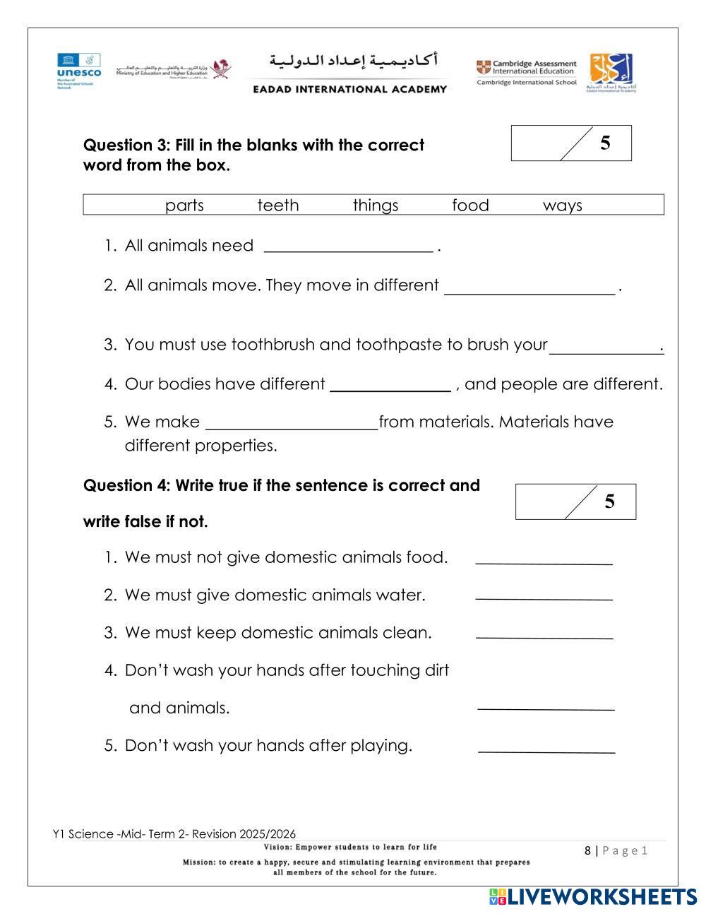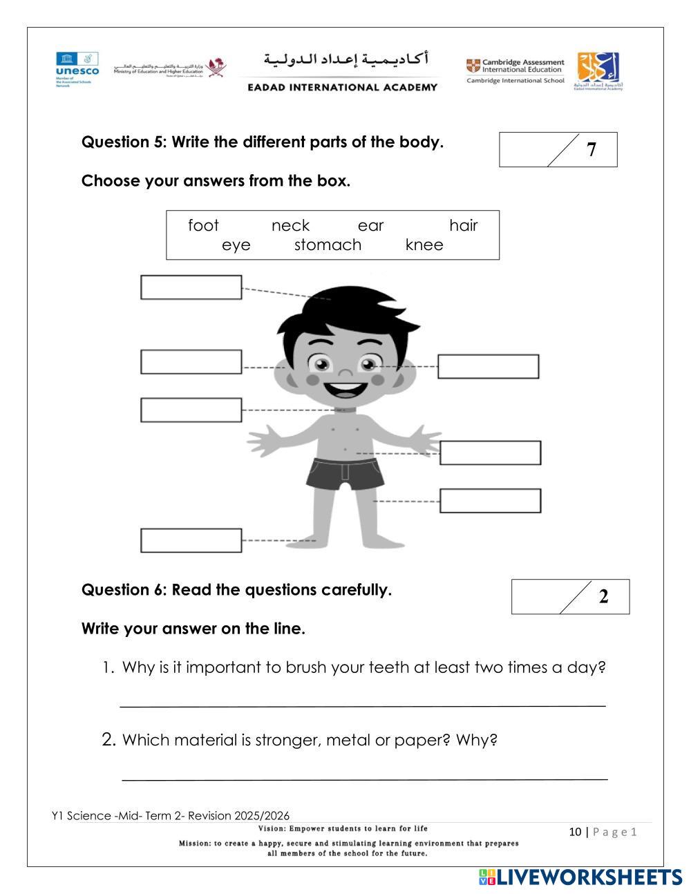 Complete the Revision Worksheet for Science.
