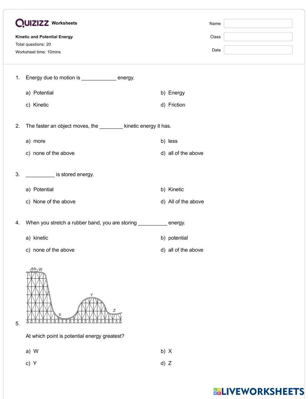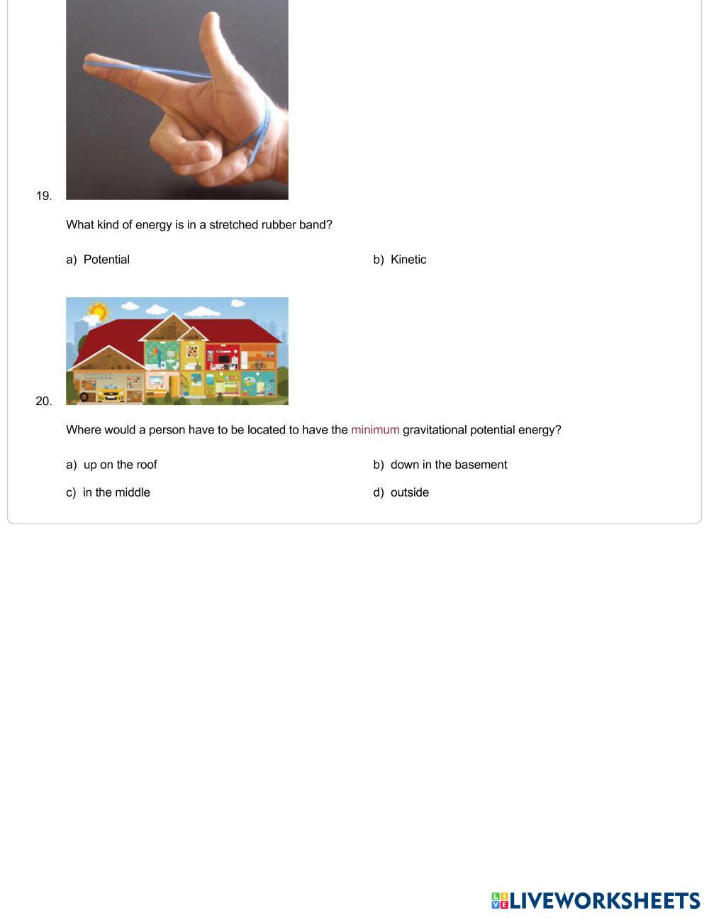 Created bykh Science Kinetic and Potential energy Edad 15+ level: 9 English Instrucciones del autor My Google Classroom Courses × 0 classes selected (0 students total) Quick Access Select all classes (0 classes) All Classes Loading courses... Cancelar Share Share to selected Course __COURSE_NAME__ __STUDENT_NAME__ (__STUDENT_EMAIL__) Kinetic and Potential Energy Descargar Worksheet Validation Comprobar mis respuestas Emails my answers to my teacher Nombre completo Group/level Asignatura Teacher's email or key code Close Submit Validating worksheet... (12) Your answers have been sent to your teacher. Good luck! OK We encountered an error submitting your answers. Please try again. OK Anuncio | Ir sin anuncios Created bykh Science Kinetic and Potential energy Edad 15+ level: 9 English Instrucciones del autor