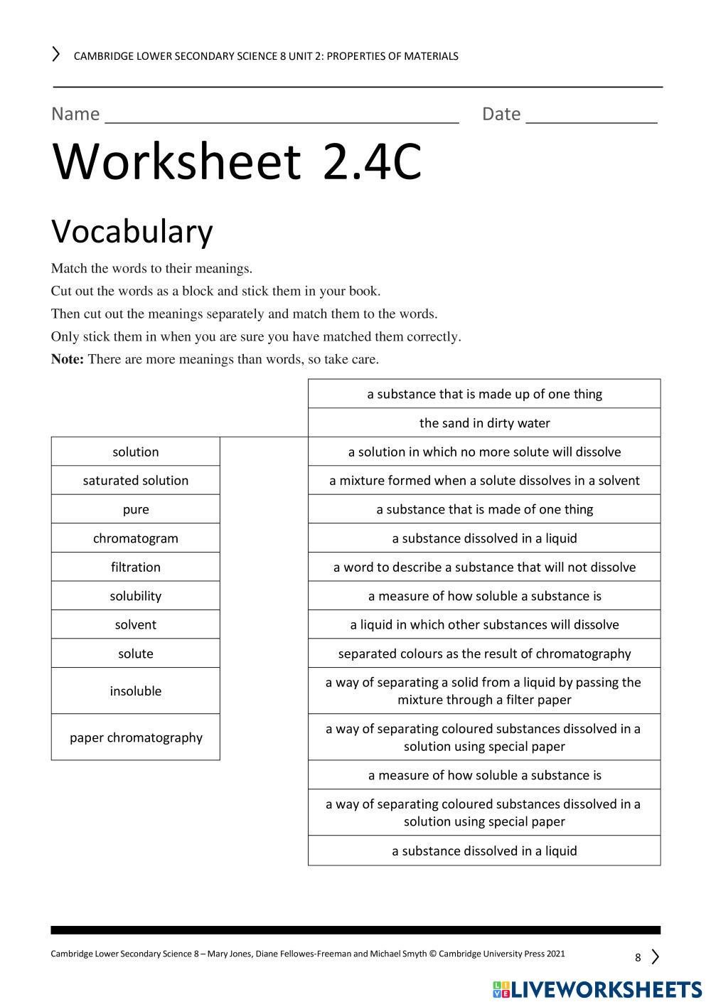 Created byNXT Science Science Review Edad 11-16 level: Grade 7 English Instrucciones del autor My Google Classroom Courses × 0 classes selected (0 students total) Quick Access Select all classes (0 classes) All Classes Loading courses... Cancelar Share Share to selected Course __COURSE_NAME__ __STUDENT_NAME__ (__STUDENT_EMAIL__) Science 8 review Unit 2 Descargar Worksheet Validation Comprobar mis respuestas Emails my answers to my teacher Nombre completo Group/level Asignatura Teacher's email or key code Close Submit Validating worksheet... (12) Your answers have been sent to your teacher. Good luck! OK We encountered an error submitting your answers. Please try again. OK Anuncio | Ir sin anuncios Created byNXT Science Science Review Edad 11-16 level: Grade 7 English Instrucciones del autor