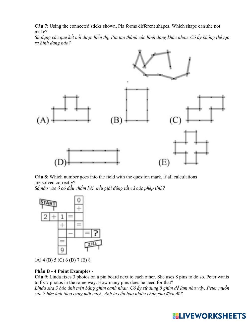 Created byLe Van Anh TOÁN 3 Kangaroo Edad 8-12 level: 3 English Instrucciones del autor Toán 3 kangaroo My Google Classroom Courses × 0 classes selected (0 students total) Quick Access Select all classes (0 classes) All Classes Loading courses... Cancelar Share Share to selected Course __COURSE_NAME__ __STUDENT_NAME__ (__STUDENT_EMAIL__) Toan kangaroo Descargar Worksheet Validation Comprobar mis respuestas Emails my answers to my teacher Nombre completo Group/level Asignatura Teacher's email or key code Close Submit Validating worksheet... (12) Your answers have been sent to your teacher. Good luck! OK We encountered an error submitting your answers. Please try again. OK Anuncio | Ir sin anuncios Created byLe Van Anh TOÁN 3 Kangaroo Edad 8-12 level: 3 English Instrucciones del autor Toán 3 kangaroo
