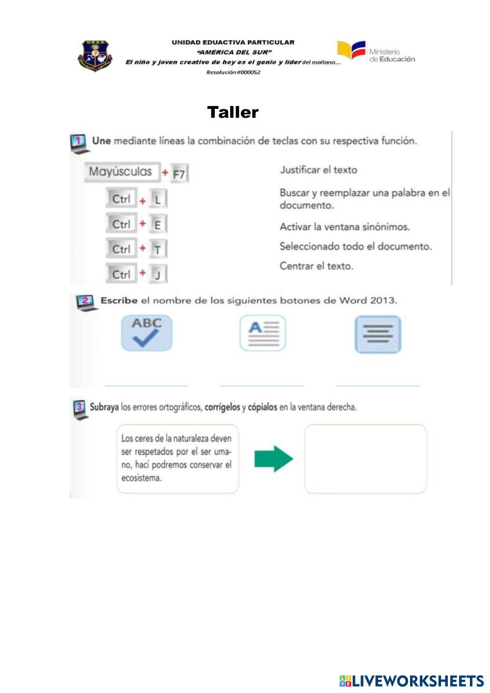 Created byYosselin Litardo COMPUTACION [email protected] Edad 11-16 level: 6to grado Spanish Instrucciones del autor My Google Classroom Courses × 0 classes selected (0 students total) Quick Access Select all classes (0 classes) All Classes Loading courses... Cancelar Share Share to selected Course __COURSE_NAME__ __STUDENT_NAME__ (__STUDENT_EMAIL__) Taller Descargar Worksheet Validation Comprobar mis respuestas Emails my answers to my teacher Nombre completo Group/level Asignatura Teacher's email or key code Close Submit Validating worksheet... (12) Your answers have been sent to your teacher. Good luck! OK We encountered an error submitting your answers. Please try again. OK Anuncio | Ir sin anuncios Created byYosselin Litardo COMPUTACION [email protected] Edad 11-16 level: 6to grado Spanish Instrucciones del autor