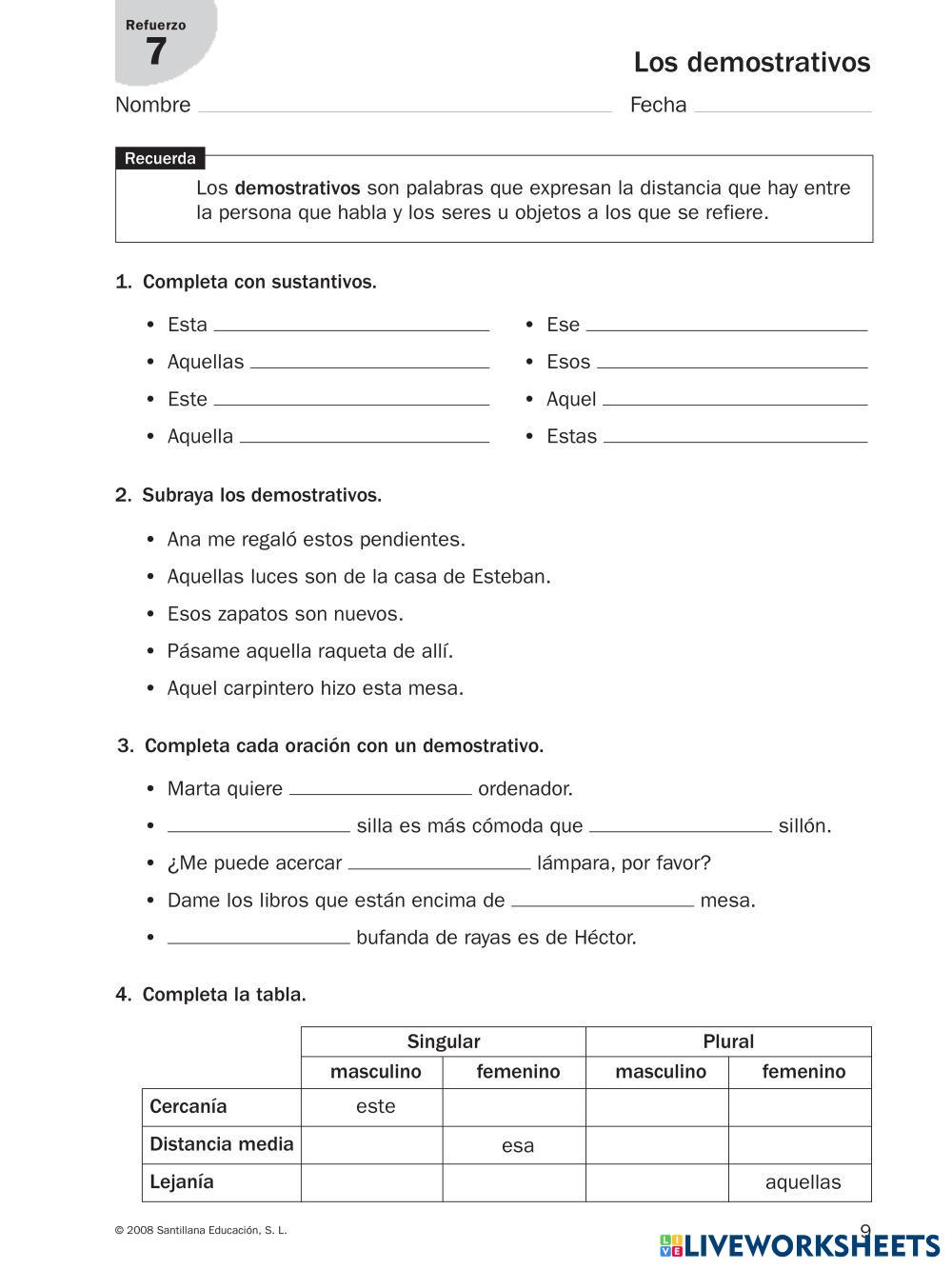 Created byMaría Victoria spanish spanish Edad 7-15 level: 4 Spanish Author's Instructions My Google Classroom Courses × 0 classes selected (0 students total) Quick Access Select all classes (0 classes) All Classes Loading courses... Cancelar Share Share to selected Course __COURSE_NAME__ __STUDENT_NAME__ (__STUDENT_EMAIL__) Determinantes demostrativos (2) Download Worksheet Validation Comprobar mis respuestas Emails my answers to my teacher Nombre completo Group/level Asignatura Teacher's email or key code Close Submit Validating worksheet... (12) Your answers have been sent to your teacher. Good luck! OK We encountered an error submitting your answers. Please try again. OK Anuncio | Ir sin anuncios Created byMaría Victoria spanish spanish Edad 7-15 level: 4 Spanish Author's Instructions